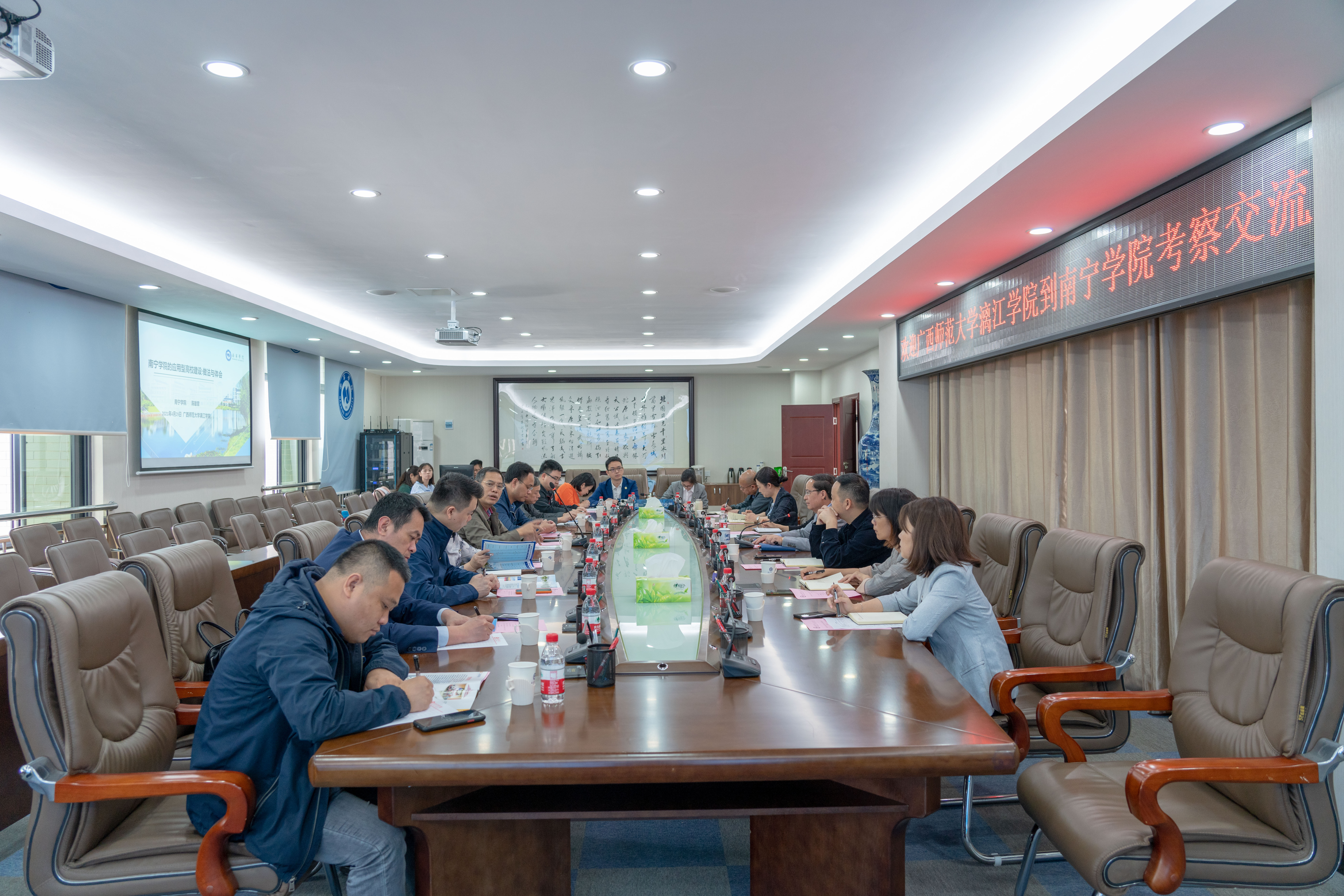 4月29日,校领导杨树喆、邓志平、杨庆庆,党政事务部、教学科研处、合作发展处主要负责人及桂林新城投资开发集团有限公司代表一行11人先后赴南宁学院、广西城市职业大学考察学习,就区域经济社会发展与办学特色凝练、二级机构设置与中层干部职数配置、内部治理体系建构与行政职能发挥等问题进行深入交流。