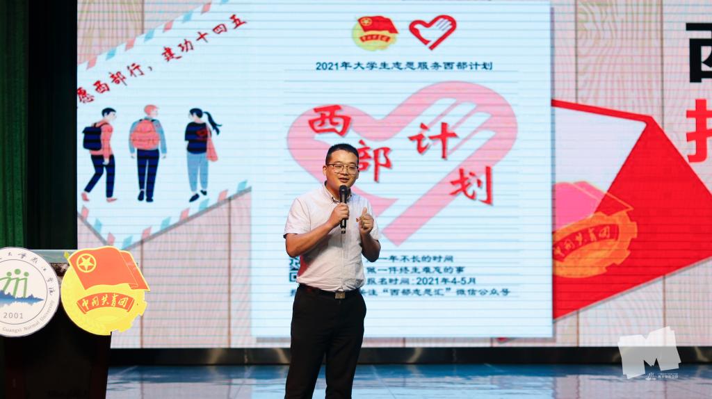 随后,单部长为与会人员解读2021年广西西部计划政策,就西部计划项目的工作内容、报名流程、激励和保障政策等内容,进行了详细的介绍和解读。最后,宣讲团成员对同学们提出的问题耐心做了解答。