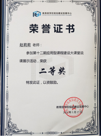 近日,由教育部学校规划建设发展中心主办,厦门大学教育研究院、应用型课程建设联盟承办的第十二期应用型课程建设大课堂在厦门大学落下帷幕。我校语言文学学院赵莉莉老师教授的《外贸单证》最终以优异的成绩摘得决赛二等奖。据悉,此次共有来自全国各地院校126名教师参赛,共遴选出其中的11名教师赴厦门参加决赛。