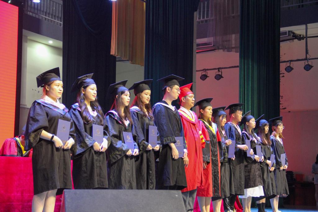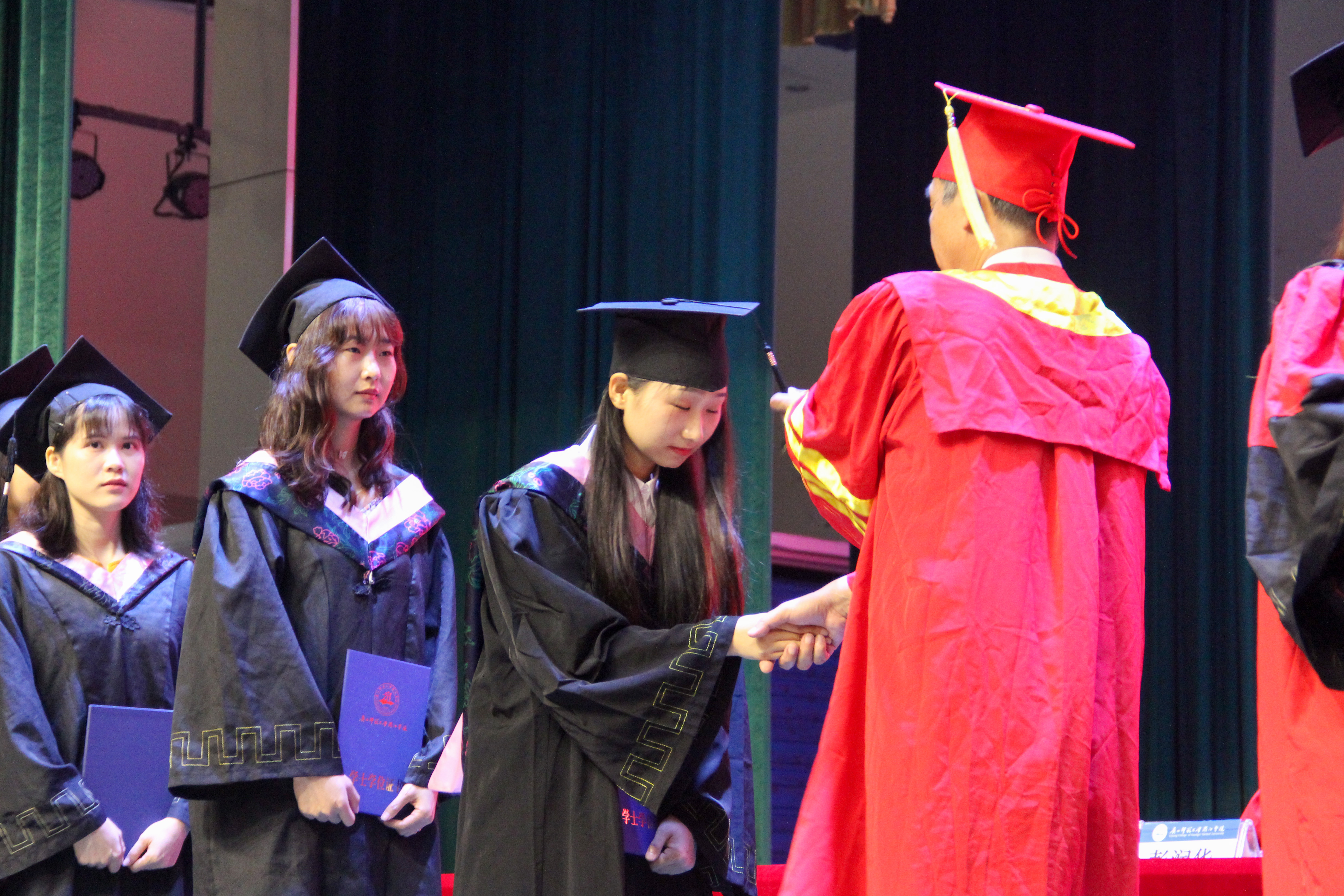 杨树喆校长和各二级学院院长分别为毕业生们拨穗正冠,送上祝福,并与同学们合影留念
