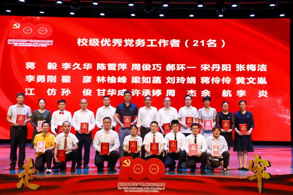 校党委书记唐文红、校长杨树喆、副校长杨庆庆分别为先进基层党组织、优秀党务工作者、优秀共产党员颁奖