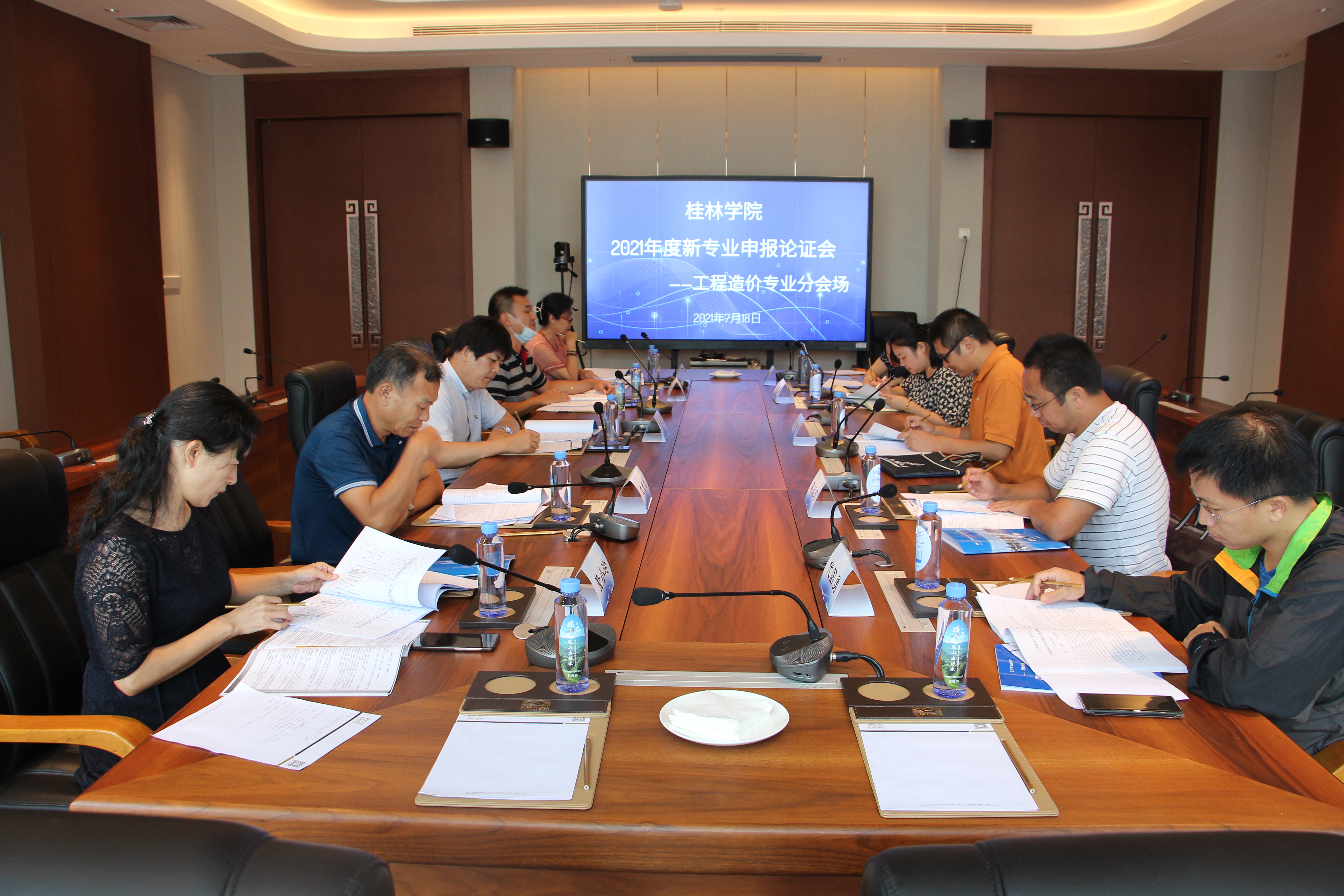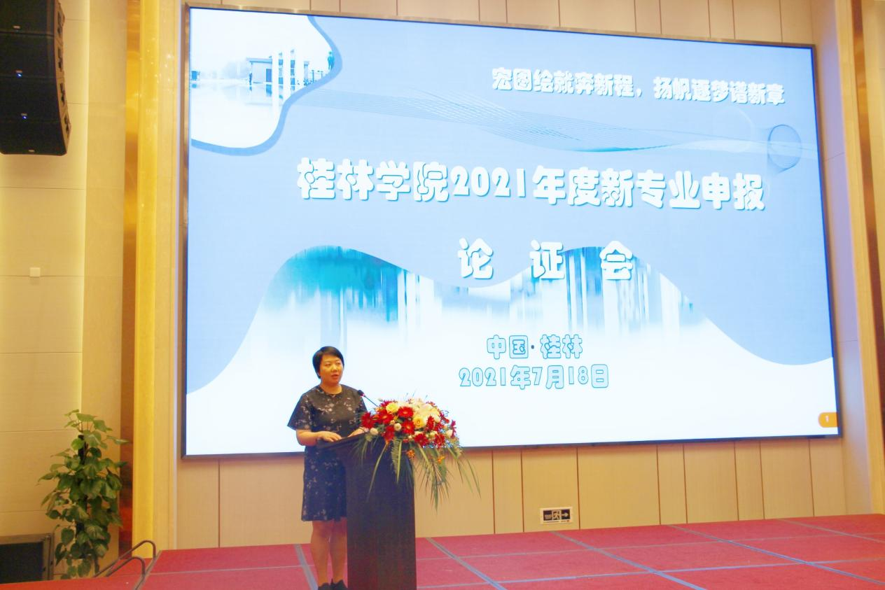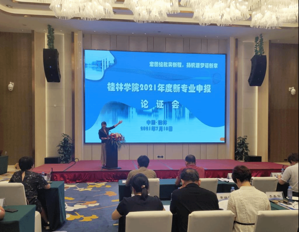 根据《自治区教育厅关于做好2021年度普通高等学校本科专业设置工作的通知》(桂教高教〔2021〕38号)文件精神和学校教学工作安排,7月18日下午,学校举办2021年度新专业申报论证会。校长杨树喆,校党委书记唐文红、副校长杨庆庆出席会议。来自广西师范大学、桂林电子科技大学、桂林理工大学、广西壮族自治区南溪山医院、桂林医学院附属医院、桂林广播电视台、洛阳规划建筑设计研究院、桂林市城市规划设计研究院、桂林市建设工程综合监督站、广西瀚特信息产业股份有限公司、中软国际(广州)信息技术有限公司、广西琦美科技有限公司、大连东软信息学院、广州龙创天地科技有限公司、微泽网、广西国涛建筑工程有限公司、广西诚华工程造价咨询有限公司、中联合创设计有限公司等合作单位专家以及学校合作发展处、人力资源部、财务资产处、学生事务部、实验教学与网络信息中心、教学科研处、经济与管理学院、理工学院、设计学院、体育与健康学院、传媒学院等单位相关负责人70余人参加本次会议。会议由副校长杨庆庆主持。