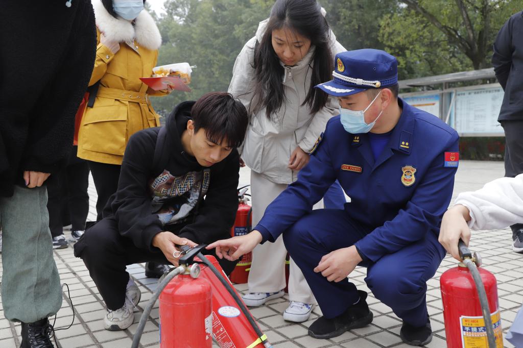 在活动现场,消防官兵现场为广大师生发放宣传资料,采用通俗易懂的宣讲方式解答了消防安全常识以及传授扑救初期火灾、逃生自救技巧等消防基本常识。现场还设置了视频讲解区、灭火演练区、现场咨询及宣传区,通过观看消防安全宣传展板、消防车视频案例讲解,并邀请同学们亲身参与灭火实操体验,让广大师生近距离了解消防、认识消防、体验消防,进一步提高大家的安全意识和自防自救能力。