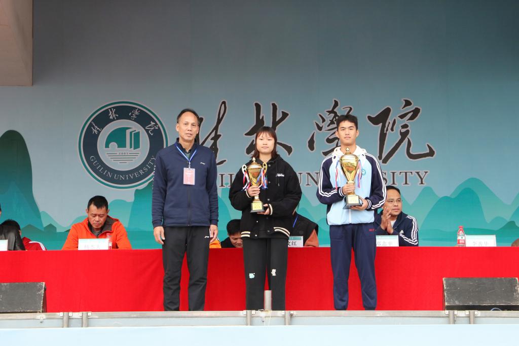 本届校运会竞赛管理组组长、体育与健康学院院长李善华为乙组团体总分前两名单位颁奖