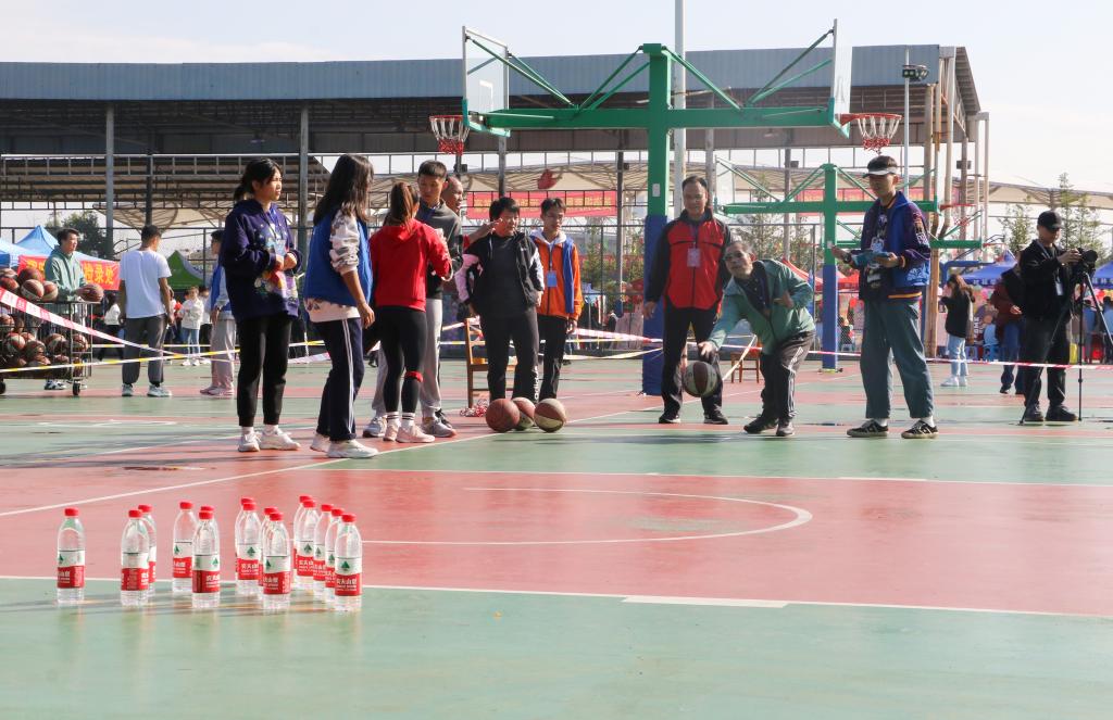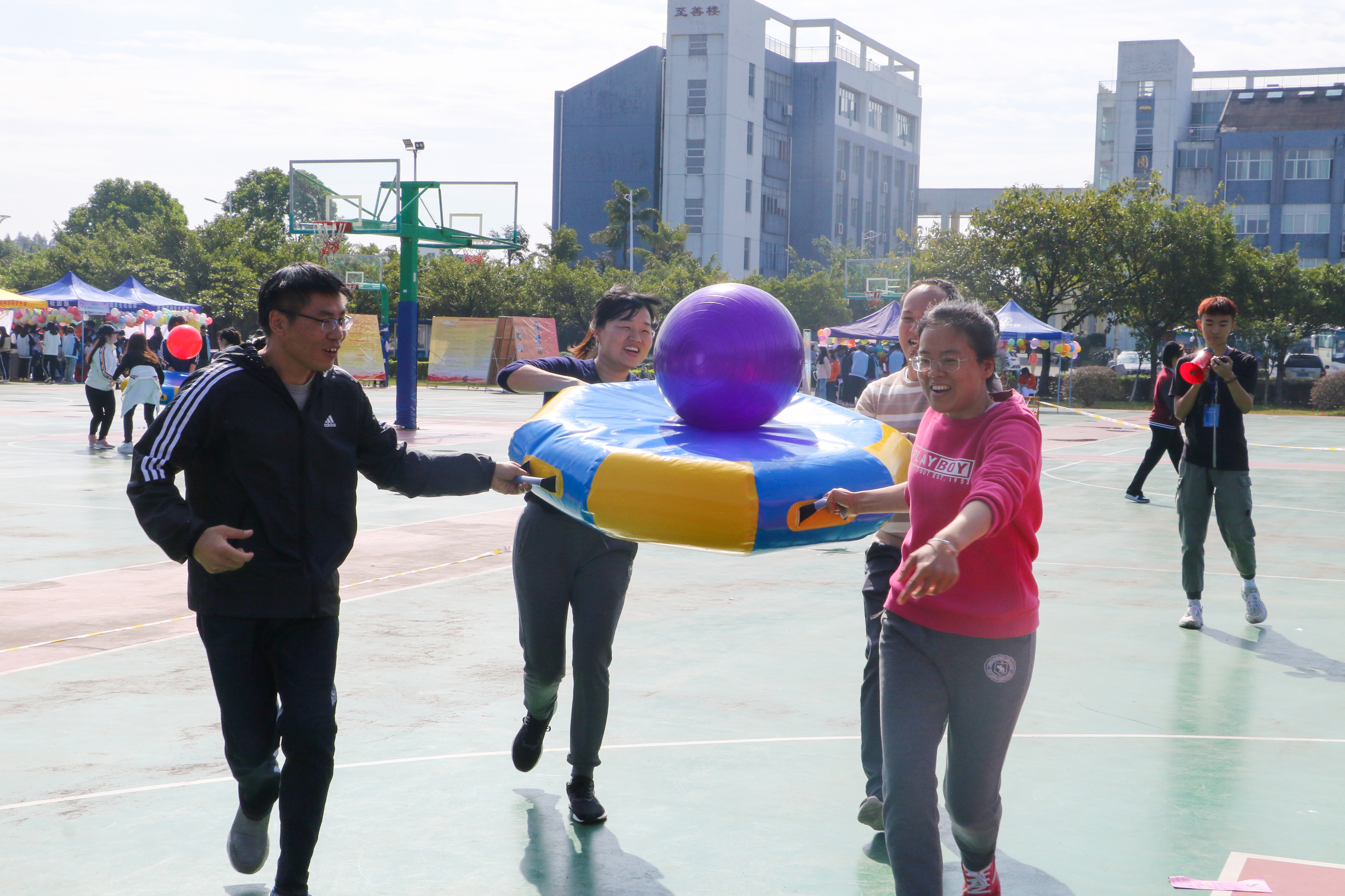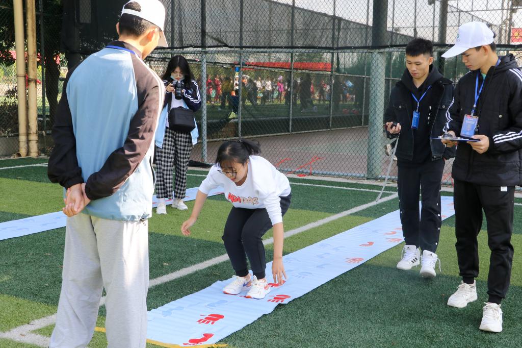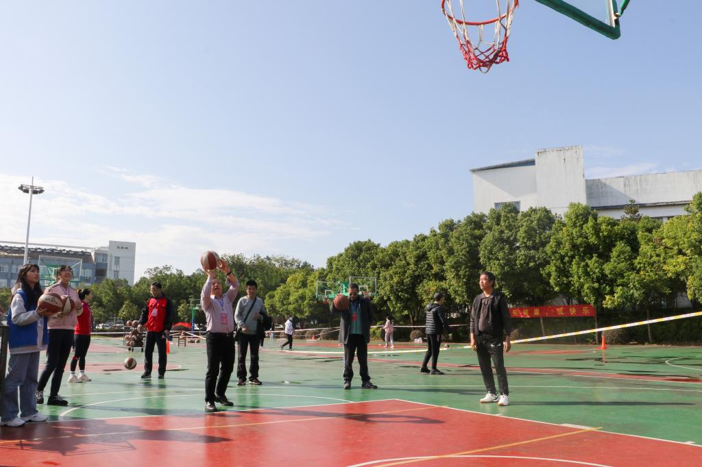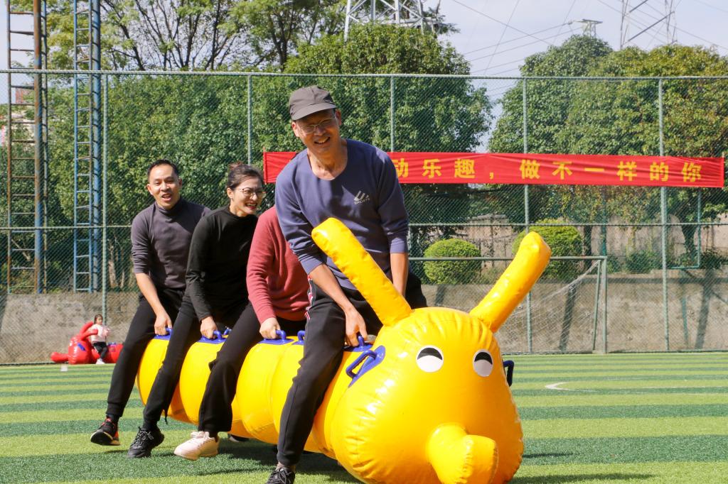 学校领导在参加趣味运动会项目