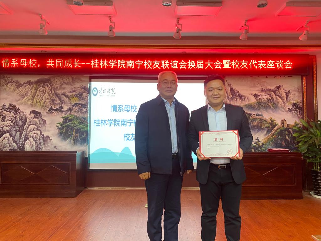 副校长刘文革为南宁校友联谊会会长颁发聘书
