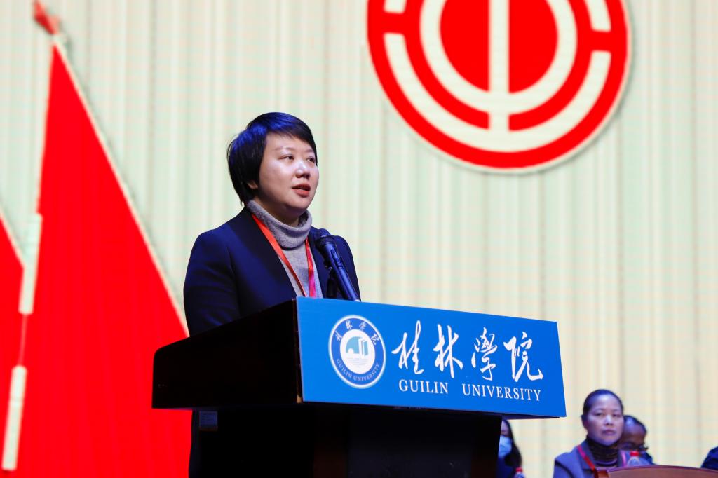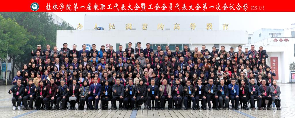 1月15日上午,桂林学院第一届教职工代表大会暨工会会员代表大会第一次会议在弘善讲堂隆重召开。校领导杨树喆、唐文红、邓志平、祝芸芸、刘文革、杨庆庆以及大会主席团成员在主席台就座。市总工会党组成员、副主席、教育工会主席莫曦媛,市教育工会常务副主席陈东,校董事会领导周道林、郑善华莅临指导。正式代表、特邀代表、列席代表近150人参加大会。
