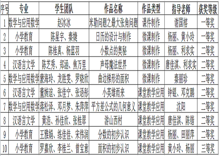我校学子在本次比赛中取得的优异成绩,检验了各师范专业在师范生现代教育技术培养方面的成效,体现了师范生信息技术应用与学科融合能力的培养探索,为顺利通过师范专业认证奠定了坚实基础。