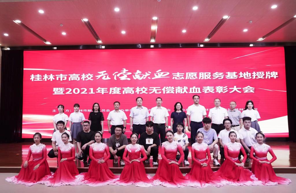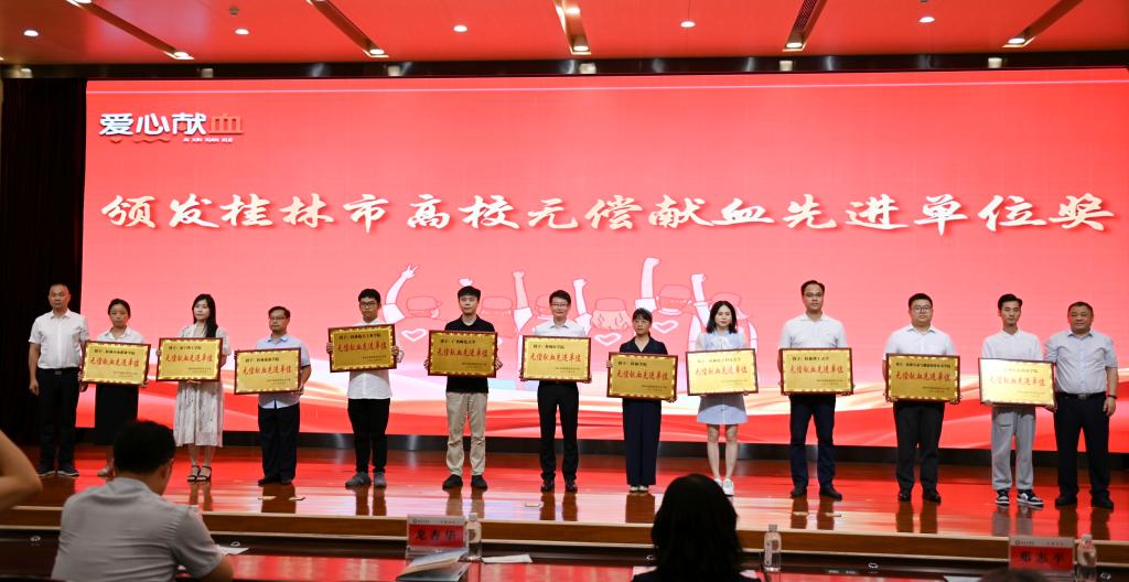 7月13日上午,由桂林市献血委员会主办,桂林市红十字会协办、桂林市中心血站和桂林医学院承办的“桂林市高校无偿献血志愿服务基地授牌暨2021年度高校无偿献血表彰大会”在桂林医学院举行,桂林市副市长、献血委员会主任龙杏华出席活动。我校荣获“2021年度无偿献血先进单位”荣誉称号,学校纪委负责人、副校长邓志平上台领奖。