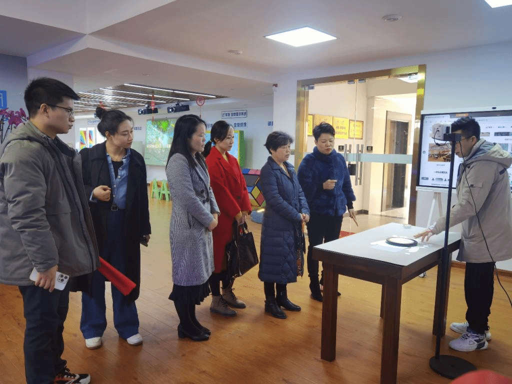在走访过程中,广西萃发科技有限公司负责人向大家介绍了公司的基本情况、公司理念等,并带领大家参观体验其特色产品,如高科技中融入思政教育、党建、国学等,亲身体验了高科技的魅力和了解AR/VR应用的魅力。