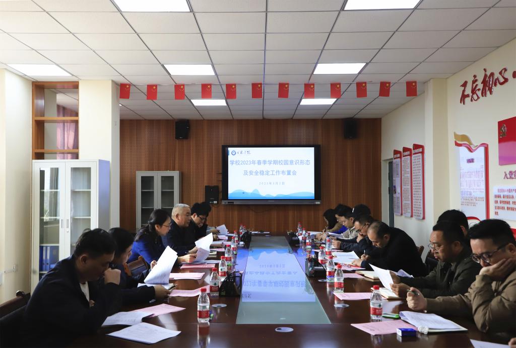 会上,学校办公室相关负责人通报2023年春季学期开学安全隐患大排查整改问题清单并布置整改工作。党委宣传部负责人对2023年第一季度意识形态和安全稳定形势作分析研判并布置相关工作。