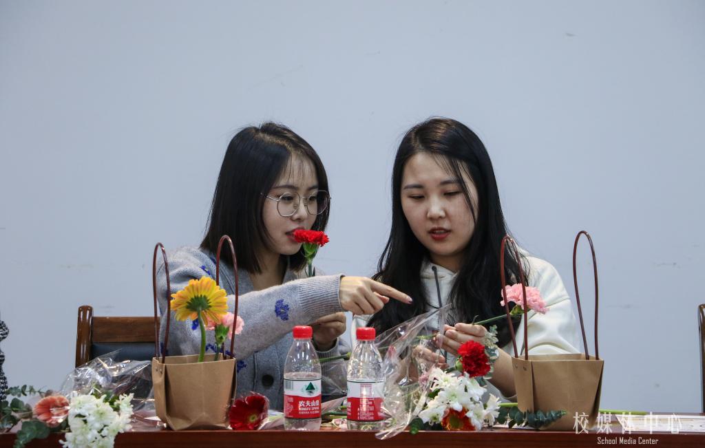 3月6日下午,校工会与太平养老保险股份有限公司广西分公司在图书馆C区三楼报告厅举办插花活动,副校长何玲参加活动并讲话。女教职工在专业花艺师的指导下制作插花作品,共同学习花艺知识,享受精致“慢生活”。经过两个小时的实践,一篮篮生机盎然的插花作品展现在大家眼前,色彩绚丽的鲜花,衬托着各位女教职工的笑脸,为新学期带来了第一抹春意。