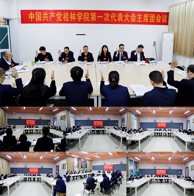 3月17日,中国共产党桂林学院第一次代表大会在弘善讲堂隆重召开。校党委书记、督导专员唐文红,董事长周道林,校领导杨树喆、邓志平、祝芸芸、刘文革、杨庆庆、蒋毅以及大会主席团成员在主席台就座。桂林市教育局三级调研员李明莅临指导。全体党员代表,部分民主党派、无党派人士代表和非正式代表中层管理干部约160人参加大会。会议应到代表145人,实到代表135人,因事、因病请假10人,符合法定人数。会议由校党委书记唐文红,校党委副书记、纪委书记、副校长邓志平分阶段主持。