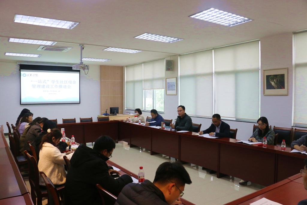 邓志平强调,“一站式”学生社区综合管理模式建设是以学生共同生活区域为基础,以服务学生在课堂学习之外的成长成才为目标,以共同价值观念为联结的学生教育生活成长共同体,其核心理念是以学生为中心,校院领导、专业教师、思政队伍、管理力量、服务资源要下沉到学生身边,服务学生成长成才。他指出,学校高度重视“一站式”学生社区建设,各相关职能部门工作中要以《高校“一站式”学生社区综合管理模式建设试点工作指南》为基础,结合学校实际情况,将学校、二级学院、职能教辅部门等方面资源和力量下沉社区、服务学生,满足学生思政教育、事务办理、学业指导、心理帮扶、生活服务的线上线下空间、平台、资源、队伍等方面的需求。他要求,一是要进一步牢记育人使命,强化认识,深刻理解学生社区建设的总体要求、建设目标;二是努力探索,突破难题,着力解决瓶颈问题,同时加强工作协同,加快建设工作进度;三是各项工作都要依照相关指南方案要求,强化工作实效性,扎实落实“一站式”学生社区建设各项工作,为学生成长成才创造良好环境,助推学校思想政治工作质量有力提升。