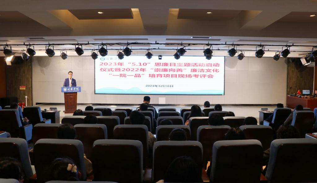 5月10日下午,学校纪委在至善讲堂组织开展2023年“5·10”思廉日主题活动启动仪式暨2022年“崇廉向善”廉洁文化“一院一品”培育项目现场考评会。校党委副书记、纪委书记、副校长邓志平出席活动,校纪委委员、特邀评委、各党总支书记及纪检委员、各党总支师生代表参加活动,活动由校纪委副书记庞一飞主持。