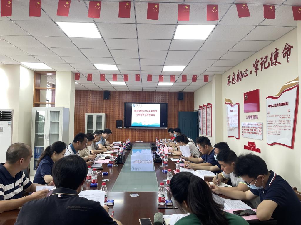 何玲主持会议并传达学习了《自治区教育厅关于公布2022年度民办高等学校年检结论的通知》文件精神,发展与质量评估处负责人就自治区教育厅反馈的“桂林学院2022年度检查问题清单”及整改任务分工作了详细说明,明确了整改任务责任单位和责任领导。与会人员进行了深入讨论,提出了整改意见和建议。