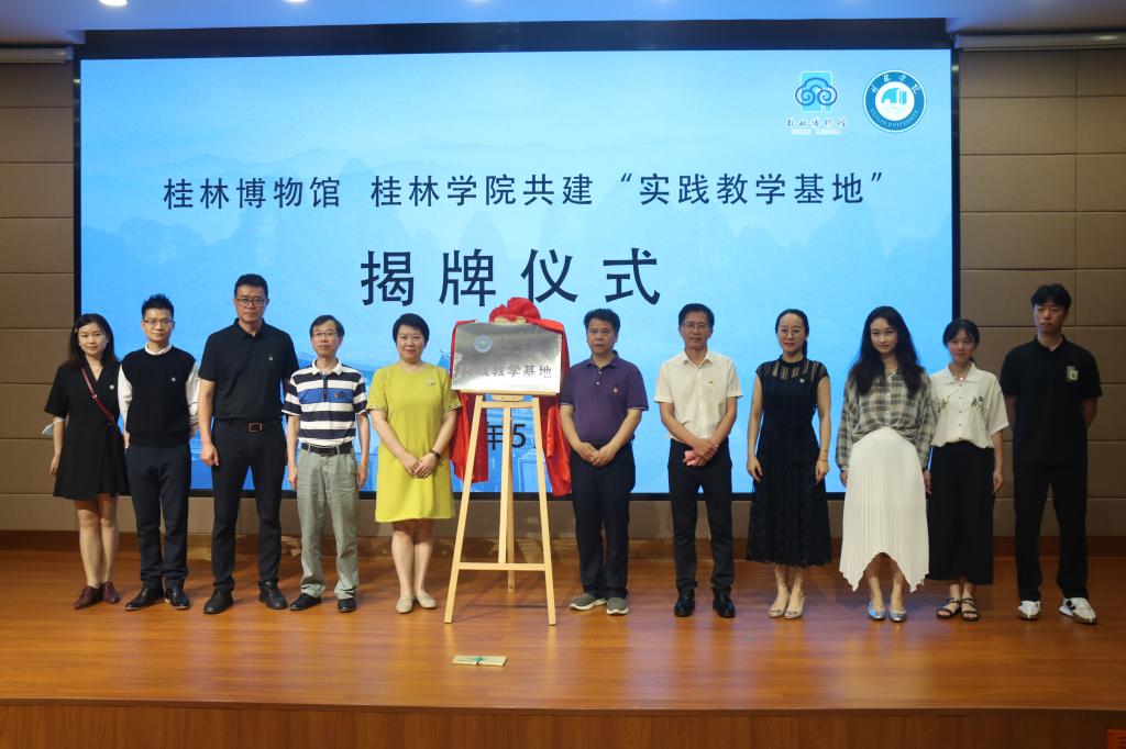 为迎接“国际博物馆日”,传承发展中华优秀传统文化和桂学文化,推动我校与桂林博物馆的合作共建,更好服务地方和社会,培养社会需要的应用型人才,5月18日上午,我校与桂林博物馆共建“实践教学基地”揭牌仪式于桂林博物馆一楼多功能厅举行,同时,双方共同开展“5·18国际博物馆日”活动。桂林博物馆馆长唐春松、副馆长洪德善,学校副校长杨庆庆,教务与产教融合处、人文学院相关负责人,校语言文字工作委员会师生代表及博物馆全体员工参加本次活动。