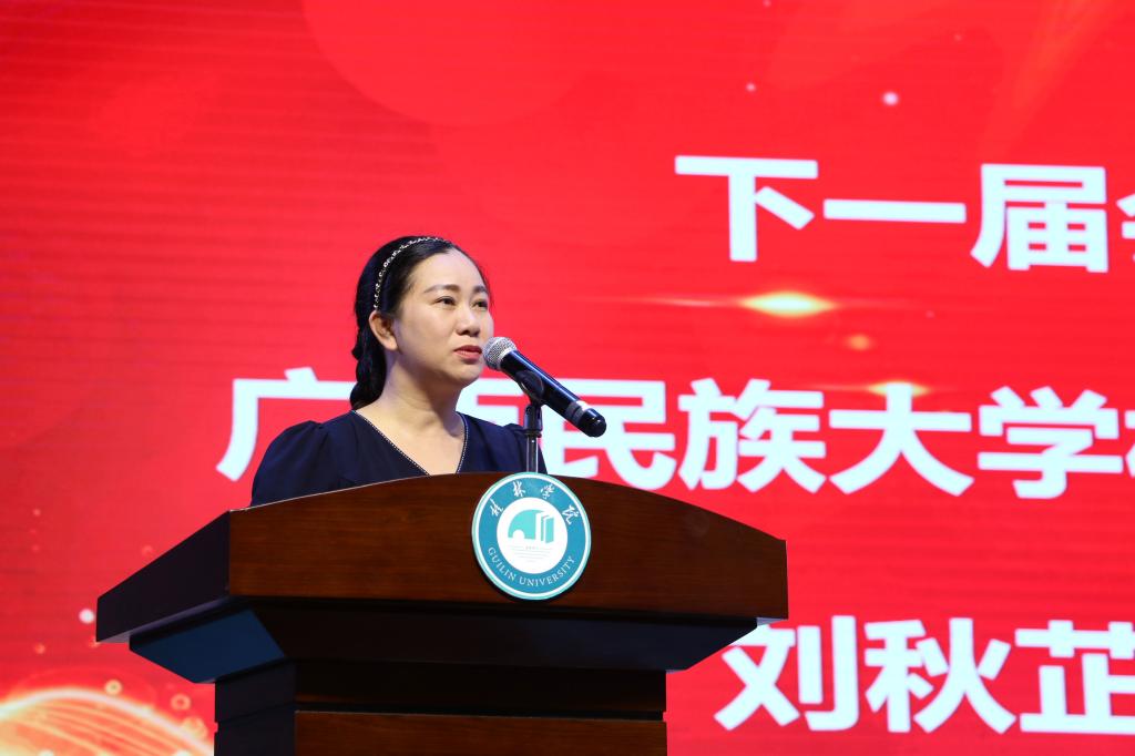 闭幕式上,广西法学教育研究会会长陈宗波教授对会议和赛事进行了总结。他对成功承办本次“两会”“三赛”的桂林学院及其工作人员、志愿服务团队表示由衷感谢,对会议交流分享的法学教育成果表示高度认可,对参赛选手的努力付出表示赞赏,对获奖者表示热烈祝贺。桂林学院副校长杨庆庆教授发表承办感想,她表示希望通过此次大会及赛事的举办,各高校法学学子能继续传承中华优秀传统法律文化,在坚持中国特色社会主义法治道路上树立自信、保持定力,捍卫法律尊严,维护公平正义。下一届会议承办方广西民族大学相思湖学院法学院院长刘秋芷代表学校对会议承办工作表示热烈期待,充满信心。