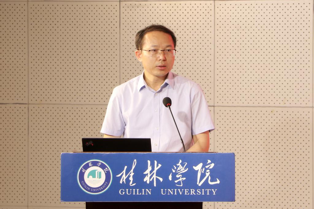 杨树喆在致辞中代表学校对广西法学教育研究会、广西法学类专业教学指导委员会给予桂林学院的信任和支持表示感谢,对全区法学专家、学者、参赛师生代表齐聚桂林学院表示欢迎。他随后总结了近年来学校在教育教学方面取得的成绩,同时表示本次学术会议是学校深入了解学术动态、学习先进经验的好机会,希望全校上下进一步加强法学教育理论研究,借鉴兄弟单位有益的经验,持续推动法学应用型人才培养实践教学基地建设。