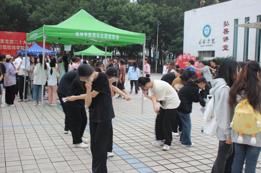 本次“奔跑吧·桂院青年”校庆日环校跑活动以环校跑为主线,在学校三个广场分别设置了“爱随风飘满桂院”、“校史校情你问我答”、“花样贺校庆”打卡点。在至善广场“爱随风飘满桂院”打卡点,同学们需在祝福卡片上写下对桂院的深深祝福以及对桂院美好未来的展望,营造出热烈欢快的活动氛围。乐善广场打卡点设置了“校史校情你问我答”环节,考验同学们对校史校情的掌握程度,有的同学还在奋力思考,有的同学已顺利盖下此章,每位同学任务进度不一,比赛进行的如火如荼。