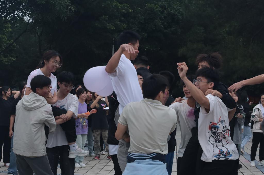 弘善广场打卡点是“花样贺校庆”,庆祝活动结合彩虹跑的特色,号召更多学生通过这一具有青春、活力、健康的运动方式为母校祝福。本打卡环节从“吸管传递”游戏开始,同学们努力传递,相互配合,齐心协力,配合默契的传递着钥匙圈;进行“成语接龙”时,同学们绞尽脑汁地想出祝福词语,认真思考,只愿为母校送上最真挚的祝福,并赶在规定的时间内完成接龙,现场气氛紧张而又激进;在玩“桂院拼拼乐”时,同学们奋力寻找相对应的图块,争取在规定时间内拼出拼图,“复原”美丽桂院;还有“骑马打仗”、“蜈蚣竞走”、“膝盖夹沙包”等共八个小游戏,每一个小游戏同学们都积极参加,现场气氛热情洋溢,热闹非凡。
