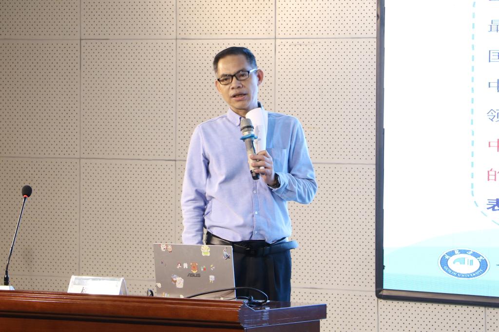 上课伊始,杨树喆以党的二十大报告为切入点,指出党的二十大报告中提到“文化”约30次,在“增进文化自信自强,铸就社会主义文化新辉煌”部分中专门对未来我国文化建设做出系统阐述,充分体现了党中央对文化建设的高度重视,因此,加强地方优秀传统文化的传承与传播是学习贯彻党的二十大报告精神“题中应有之义”。随后,杨树喆从“宏观视域下的广西特色传统文化”“壮族传统文化:广西的文化地标”“作为生产力的广西特色传统文化”三个板块,依次讲授了广西特色传统文化的内涵、类型和特征,壮族源远流长的歌咏文化、丰富多彩的稻作文化和讳莫如深的师麽文化,阐述了进一步解放和发展广西特色传统文化生产力的战略思考。他还引用党的二十大报告第八章中关于“两个结合”“讲好中国故事、传播好中国声音、展好中国形象”的两段重要论述作为本次授课的结束语,勉励广大教师认真学习领会党的二十大报告的精神实质,在课堂教学中积极引导学生为“讲好广西故事、传播好广西声音,展现可信、可爱、可敬、壮美的广西形象”作出应有的贡献。