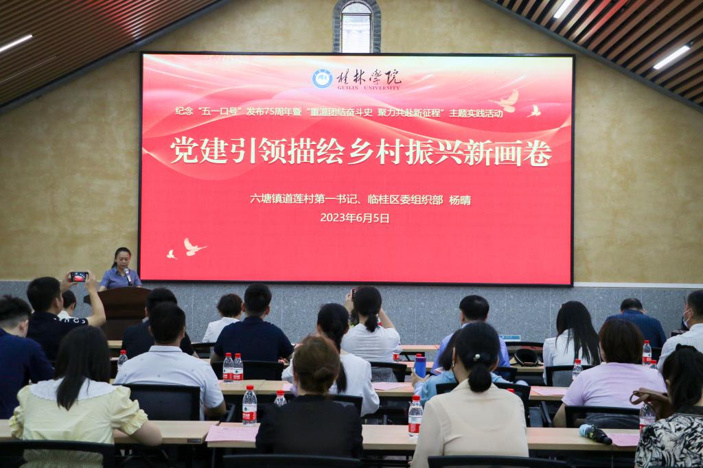 6月5日上午,学校纪念“五一口号”发布75周年暨“重温团结奋斗史聚力共赴新征程”主题实践活动在临桂区六塘镇岚岩村举行。学校党委书记、督导专员唐文红,副校长何玲,各民主党派和无党派人士代表、中国台湾籍教师代表、党外知识分子教师、留学归国教师代表和各二级党总支书记代表30余人参加实践活动。