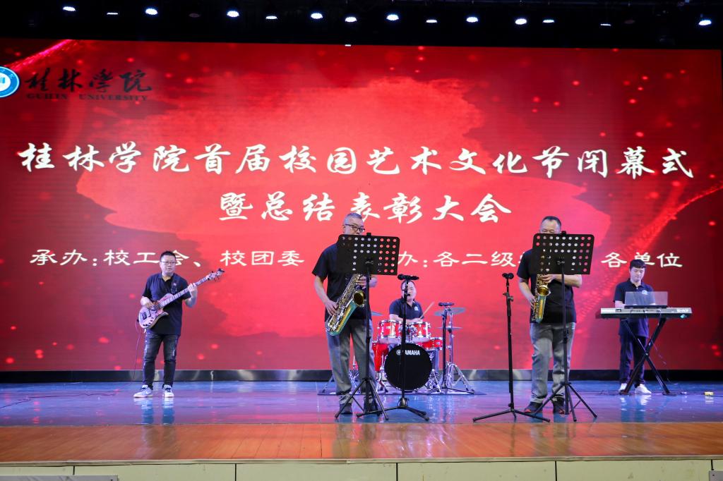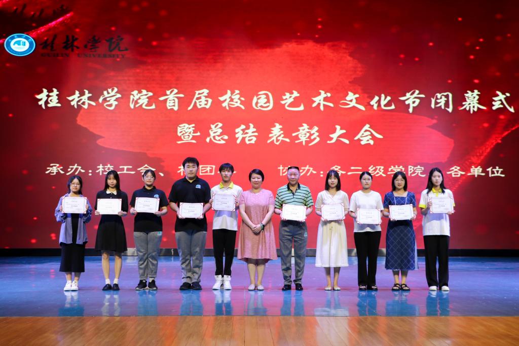 本次首届校园艺术文化节闭幕式暨总结表彰大会旨在号召广大同学以受到表彰的集体和个人为榜样,积极投身校园文化建设,为学校全面建成“校城双向赋能融合发展新典范的国有民办城市型大学”而不懈努力。接下来,学校将以此次活动为契机,不断总结提升艺术文化节活动质量,丰富活动的形式载体,深化与桂林市文艺单位团体的交流合作,秉持传承优秀中华传统文化的初心,继续加强美育工作,展现积极向上、格调高雅、健康文明、丰富多彩、面向全体、彰显个性的校园美育格局,促进美育交流与合作,让美育浸润师生们的心灵。