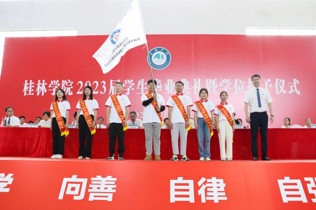 毕业典礼在全体师生声情并茂的《桂林学院赋》诵读声中达到高潮,并在悠扬的《造就人才的殿堂》校歌声中落下帷幕。