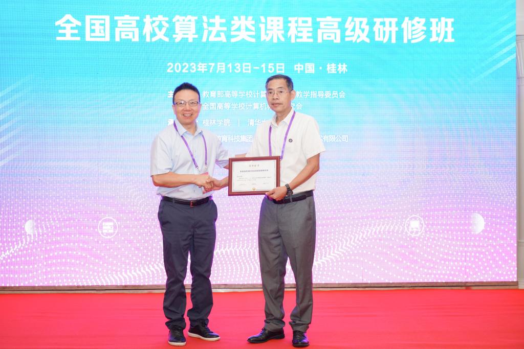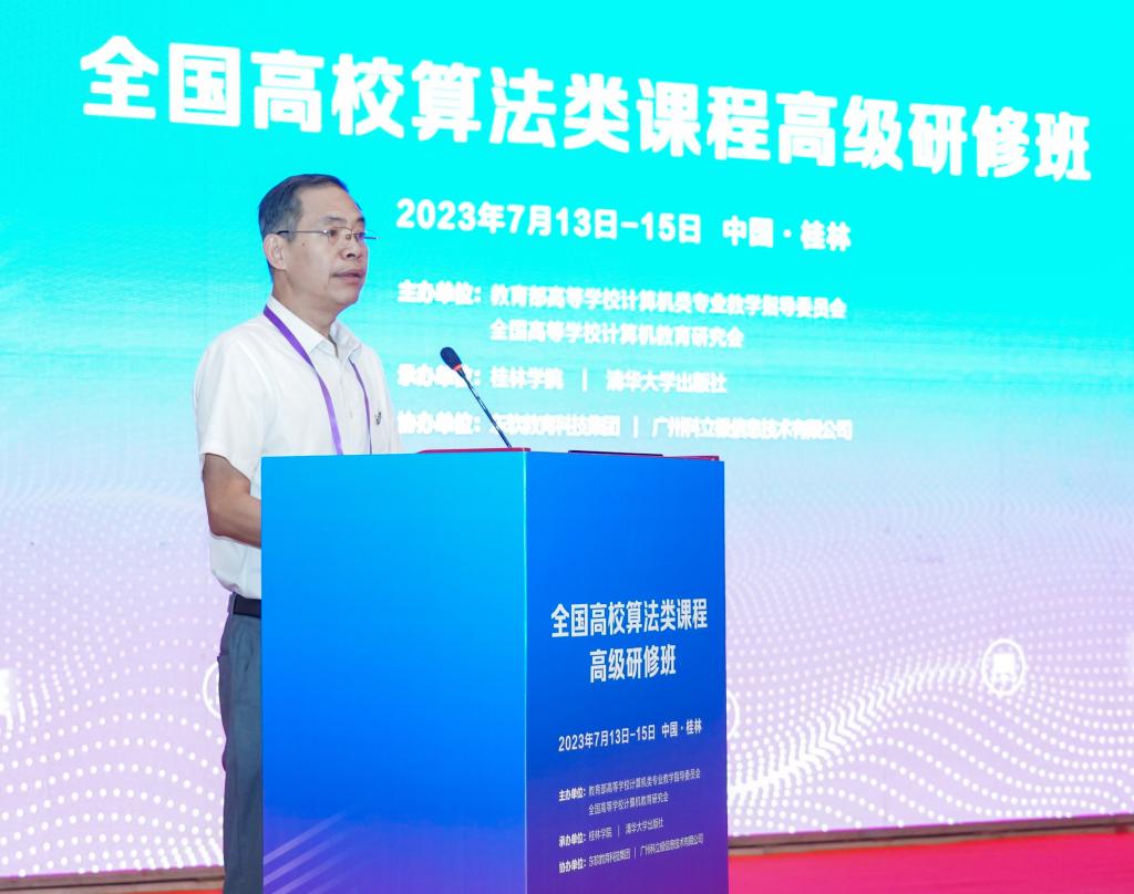 7月14-15日,由教育部高等学校计算机类专业教学指导委员会、全国高等学校计算机教学研究会主办,我校与清华大学出版社承办的全国高校算法类课程高级研修班在桂林成功举办。学校董事、校长杨树喆,清华大学出版社常务副总编辑、副社长卢先和,以及来自全国30多所高校教务处、相关院系教学主管领导、课程负责人、骨干教师近60人参加此次会议。