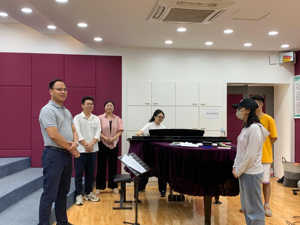 邓志平现场听取了参赛作品的表演曲目,对大家的辛勤付出表示充分肯定,并对进一步做好本届大学生艺术展演活动提出了三点要求:一是要提高政治站位,全力打磨好表演作品,以最好的精神和姿态完成本届展演活动。二是要责任到位,相关部门、学院要密切配合、履职尽责,确保各项工作顺利推进。三是要保障到位,要把演职人员的安全和健康放在首位,全力以赴做好最后的冲刺,为顺利参加大艺展活动提供有力保障,充分展现桂院学子的青春魅力,为校争光。