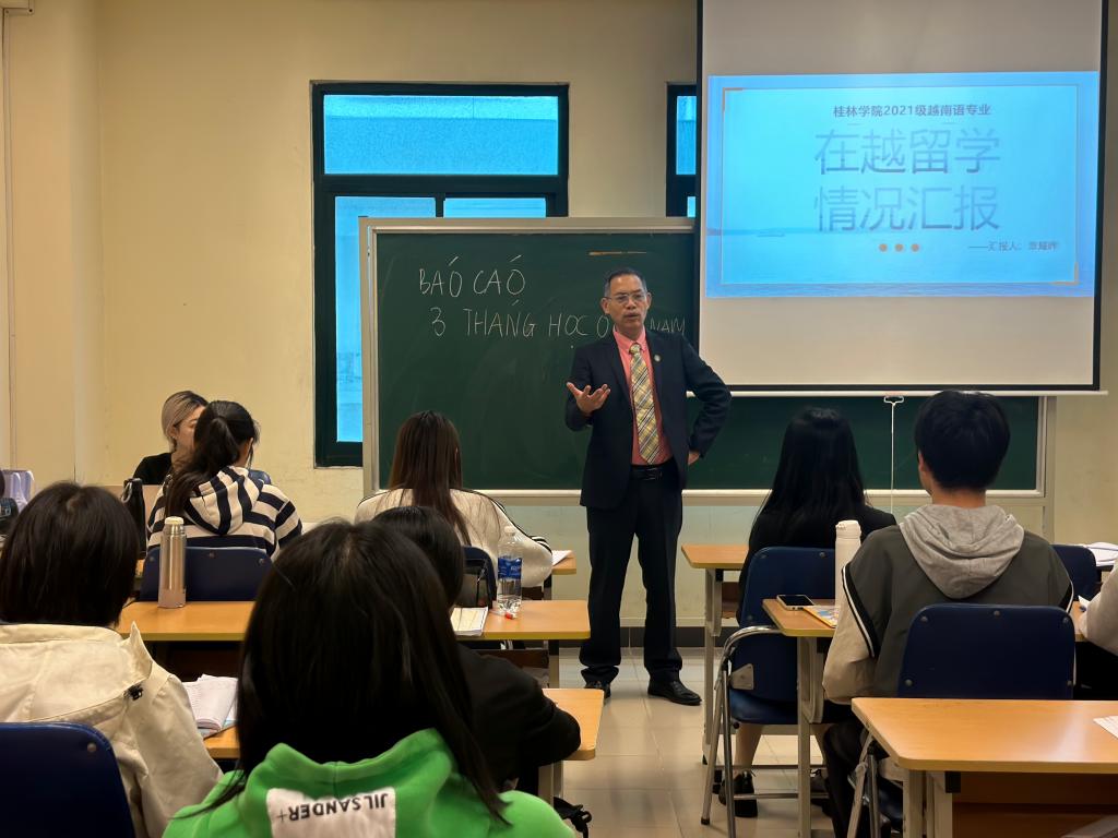 随后,代表团一行看望慰问了正在河内师范大学开展“3+1”留学项目的22名2021级越南语专业学生,深入课堂听课,听取学生代表留学情况汇报并合影留念。