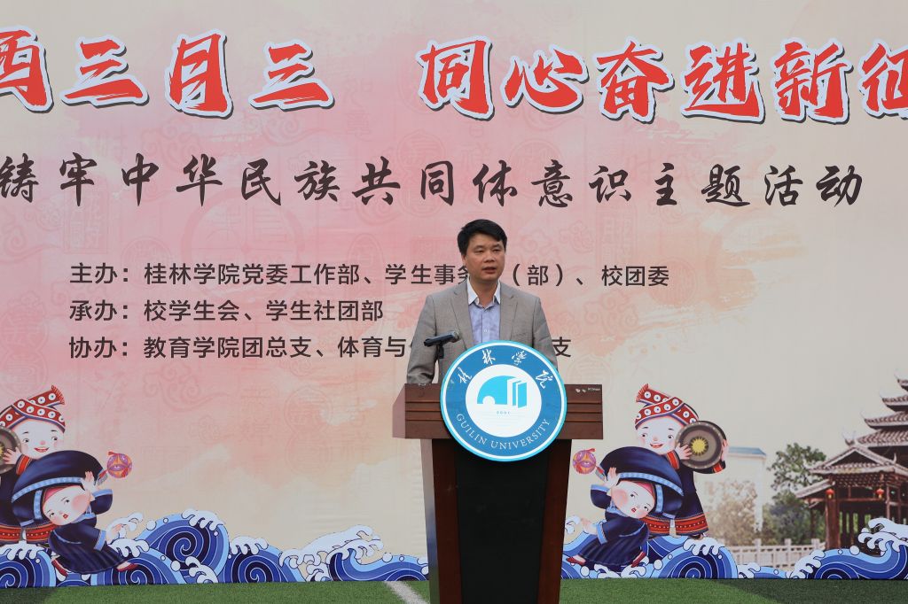 蒋毅在致辞中表示,希望广大同学们能够积极参与到本次活动中,深入了解和学习广西的民族文化,积极融入多元文化,不断增进与各族青年学子的交往、交流、交融,促进各民族之间的和谐交流,增强对中华民族共同体的认同感和归属感。同时,也希望学校的老师们能够发挥自身优势,引导和支持学生们的学习和实践,牢固树立休戚与共、荣辱与共、生死与共、命运与共的共同体理念,共同推动中华民族优秀传统文化在校园的传承和发展。