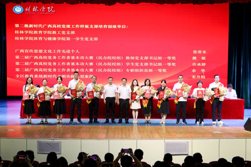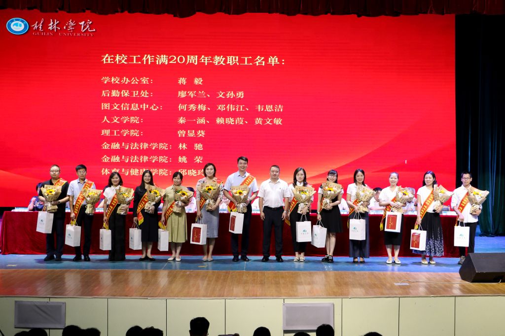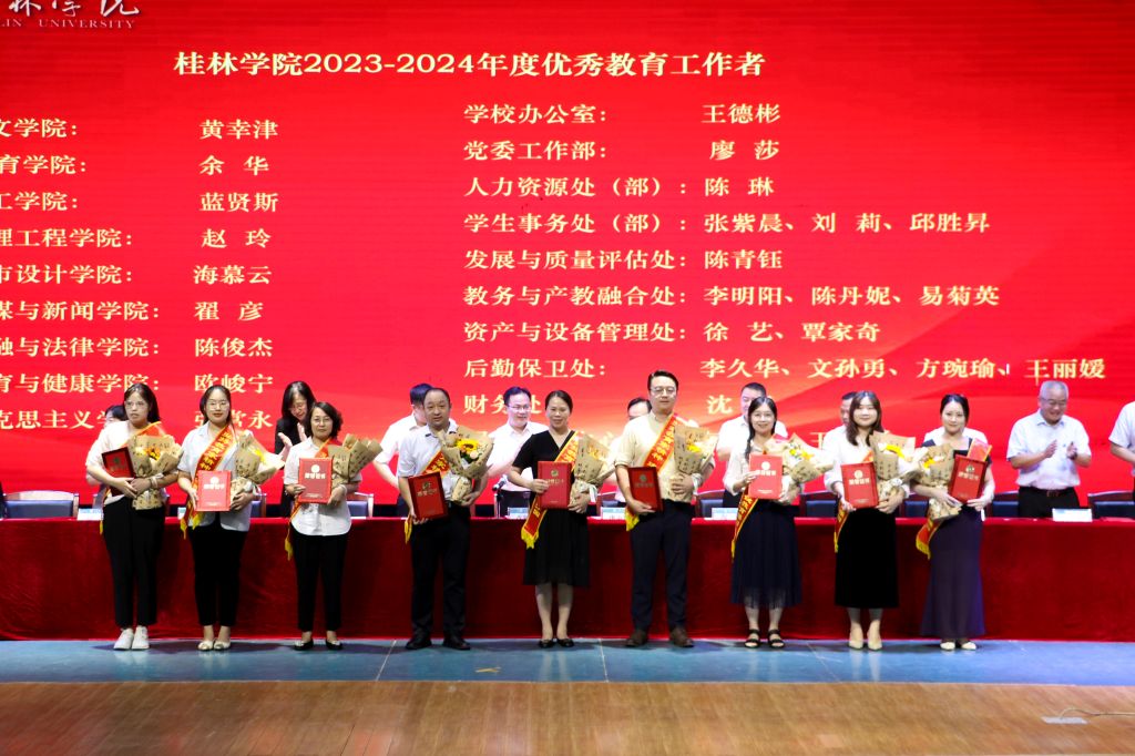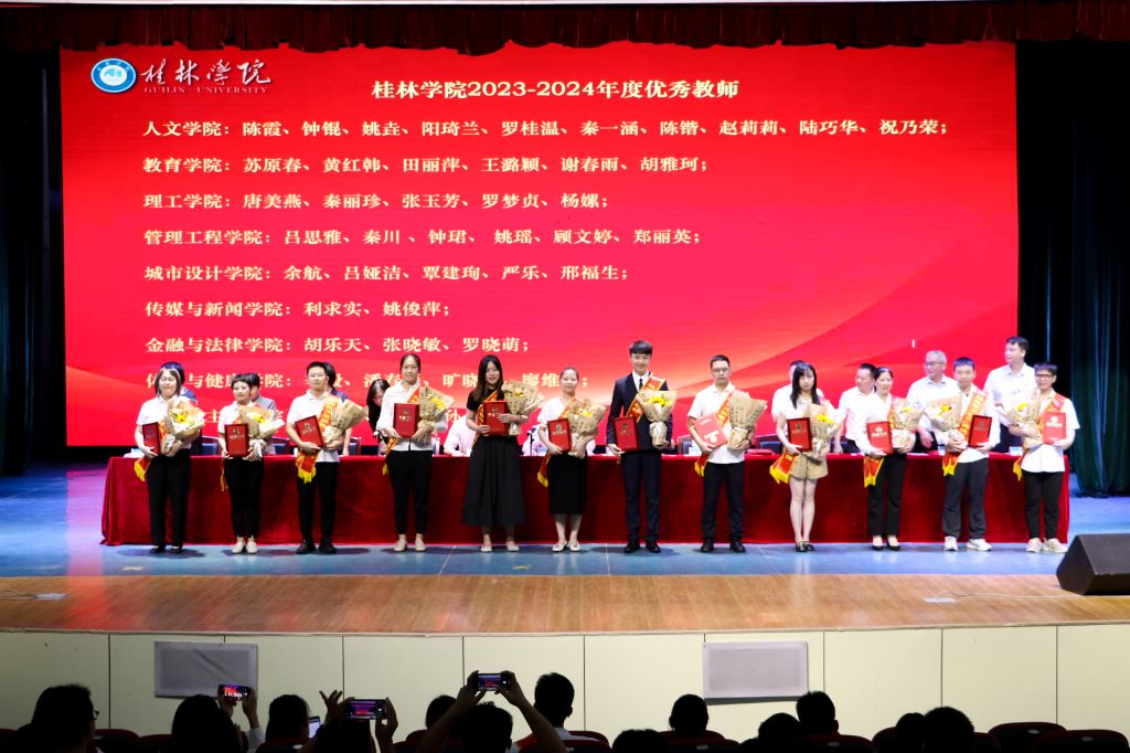 卢新华代表市委、市政府向受表彰的优秀个人和先进集体(团队)表示祝贺,向全校教职工致以诚挚的节日问候。他高度肯定了桂林学院自2021年转设以来取得的成绩,并根据市委书记周家斌的指示要求,就进一步做好学校教育教学各项工作提出了三点希望:一是希望桂林学院进一步深入学习贯彻落实习近平总书记关于教育的重要论述,始终坚持正确的办学方向,准确把握市委、市政府对桂林学院的发展定位,办好人民满意的城市型大学,切实加强学校各项管理工作,营造安全稳定和谐的校园环境。二是希望全体教职工坚守立德树人初心,勇担教书育人使命,为打造世界级旅游城市,奋力谱写中国式现代化桂林篇章,作出新的更大贡献。三是希望同学们坚定理想、志存高远,勤奋学习、增强本领,在打造桂林世界级旅游城市中激荡青春力量、展现青春风采、成就精彩人生!