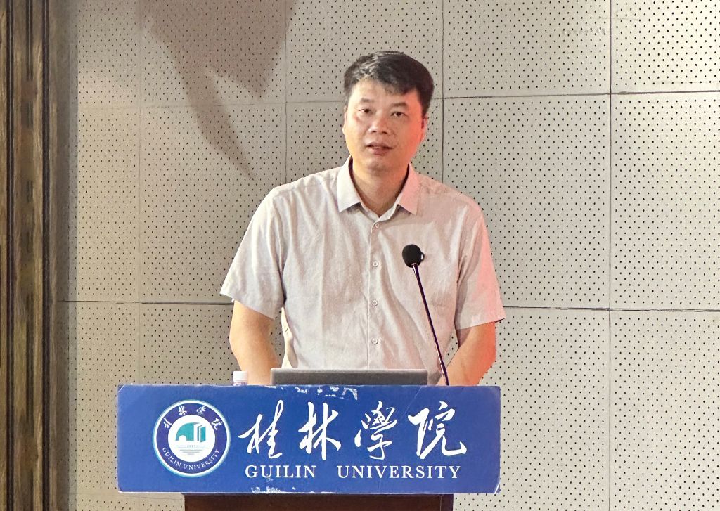 副校长蒋毅以《以党的二十届三中全会精神为指引,全面推进依法治校高质量发展》为主题,结合《中华人民共和国民办教育促进法实施条例》和《桂林学院章程(2022年核准稿)》(以下简称《章程》)主要内容,在依法办学、依法治校、依法治教等方面进行了深度解读。他强调,要深刻领会党的二十届三中全会的重大意义,把握全面深化教育综合改革的战略部署,强化依法治校,加快推进治理体系和治理能力现代化。他指出,《章程》是学校的最高纲领,是学校的根本大法,承载着大学精神,昭示了大学使命,是学校办学理念、办学宗旨、办学目标的集中体现,是学校实现依法治校的重要依据和法律基础。在报告中,蒋毅副校长还回顾了学校从初创到转设的发展历程,介绍了学校未来总体发展目标和思路,勉励新教师们要持续加强学习、追求卓越,主动将个人职业发展融入到学校教育事业的发展之中,为桂林学院教育事业的高质量发展贡献力量。