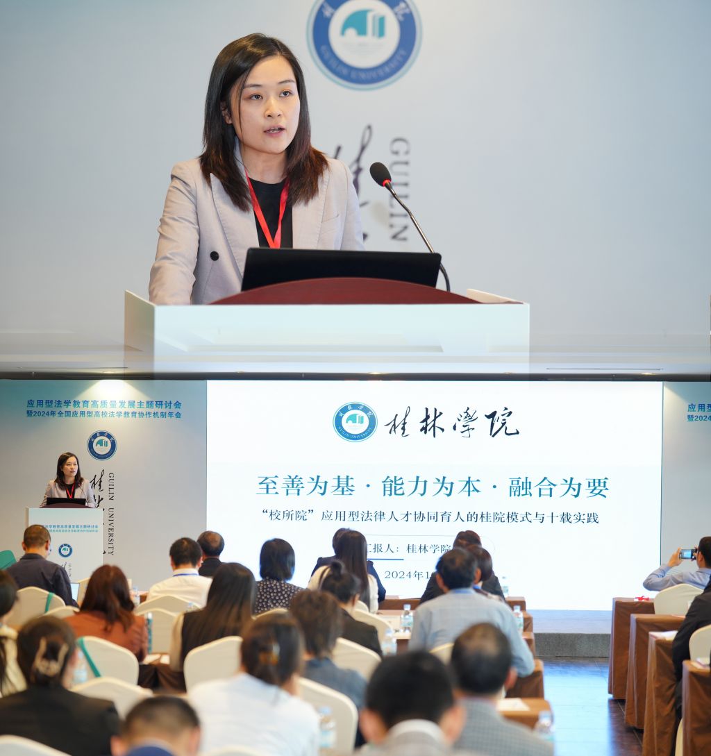 近日,应用型法学教育高质量发展主题研讨会暨2024年全国应用型高校法学教育协作机制年会在桂林学院成功举办。会议由全国应用型高校法学教育协作机制、广西法学会法学教育研究会、桂林学院、广西地方法治与地方治理研究中心主办,由中国政法大学出版社、深圳市亚讯威视数字技术有限公司、杭州法源软件开发有限公司、广西紫腾信息科技有限公司协办。来自全国近40所高校的100多位专家学者齐聚一堂,共同探讨应用型高校法学教育高质量发展之路。