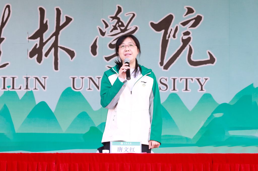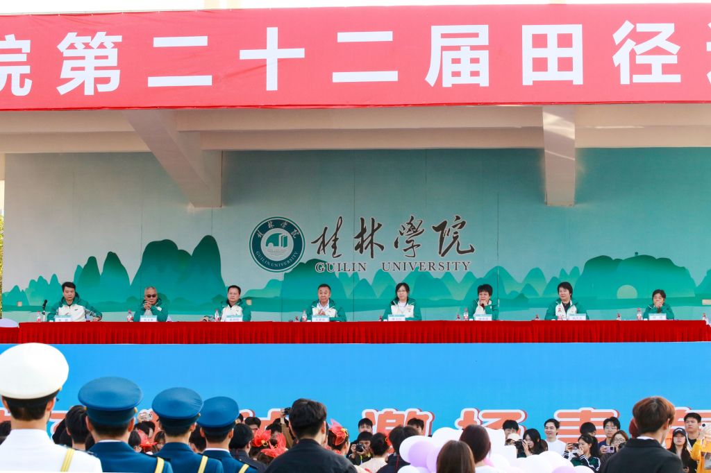 吴郭泉代表学校向前来参加开幕式的各位领导、来宾表示热烈欢迎,向全体运动员、裁判员致以亲切问候,向为精心筹备此次运动会付出辛勤劳动的师生表示衷心的感谢。他指出,长期以来学校将崇尚体育精神、重视体育育人作为人才培养实践的重要指标,本次校园体育文化节作为全校师生精神风貌和校园文化成果的全面展示,不仅是落实“五育并举”的要求,也是学校育人实效的集中体现。在过去一年中,学校体育工作取得了显著的成绩,广大师生在全区乃至全国各类体育赛事中屡创佳绩。他希望全体师生在体育锻炼、体育竞赛中养成坚韧拼搏、积极进取的品质,学会合作互助、承担责任的精神,养成遵规守纪、诚信自律的意识,树立正确的胜负观,享受运动乐趣、拥有健康体魄、获得幸福人生,赛出桂院人的精气神。
