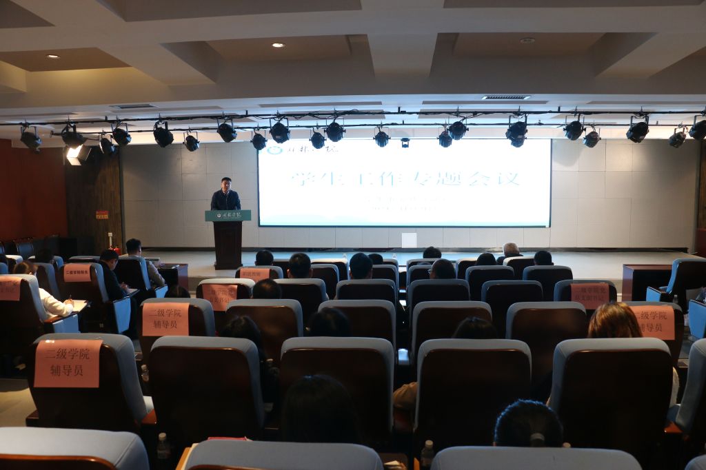 11月21日,学校召开学生工作专题会议。校领导吴郭泉、康庚莲、刘文革、蒋毅出席会议。各职能教辅部门主要负责人、各二级学院院长(主持工作副院长)、党总支书记、副书记,全体辅导员,学生事务处(部)班子成员及全体工作人员参加。会议由副校长蒋毅主持。