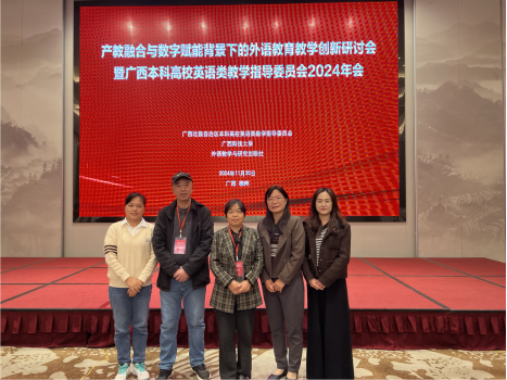 11月30日,由广西壮族自治区本科高校英语类教学指导委员会主办,广西科技大学和外研社共同承办的“产教融合与数字赋能背景下的外语教育教学创新研讨会暨广西本科高校英语类教学指导委员会2024年会”在柳州召开。来自全区高校英语类教学指导委员会委员,各高校外国语学院负责人,教研室主任及骨干教师参加会议,我校副校长何玲教授受邀出席,人文学院教研室主任一同参会。