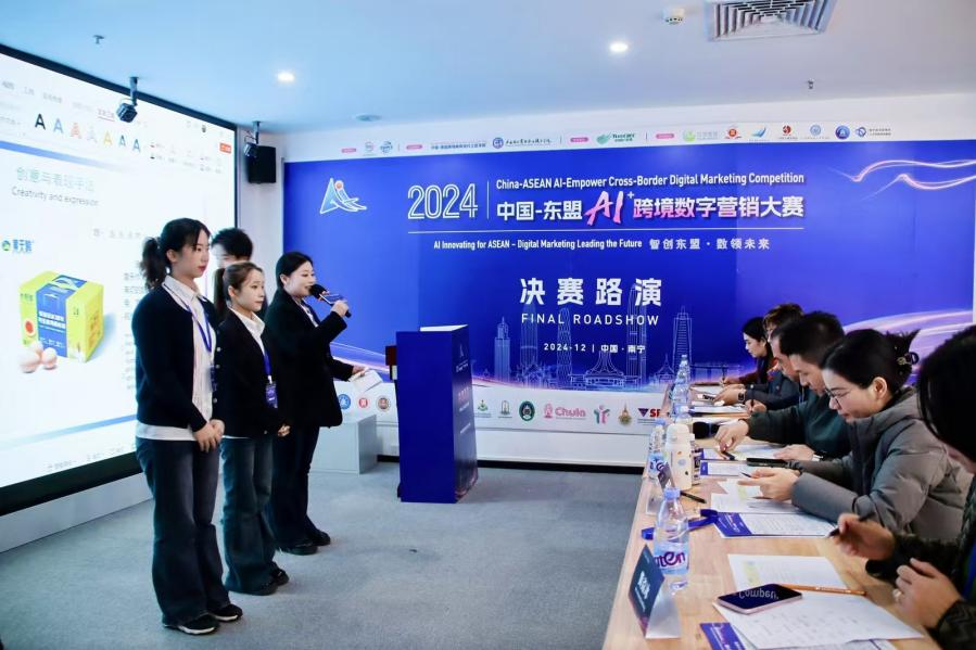 本次大赛由广西壮族自治区商务厅与广西贸促会指导,以“智创东盟,数领未来”为主题,旨在多层面、多角度挖掘与培养参赛者的国际营销洞察力和数字营销实战能力,同时推动AI技术在跨境商业领域的深度应用,促进中国—东盟区域内国际贸易的智能化升级。泰国驻南宁总领事馆商务领事尼迪·巴通翁等嘉宾出席决赛现场并致辞。