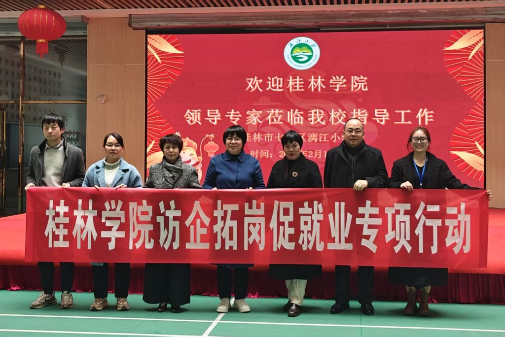 为深入贯彻落实教育部关于高校毕业生就业工作的决策部署,为毕业生拓展就业岗位资源,深化基高合作的深度与广度,近日,校纪委书记康庚莲、副校长何玲率队前往桂林市七星区漓江小学开展访企拓岗促就业专项行动。学校监察处、人文学院、教育学院、体育与健康学院相关负责人及教师代表参加。