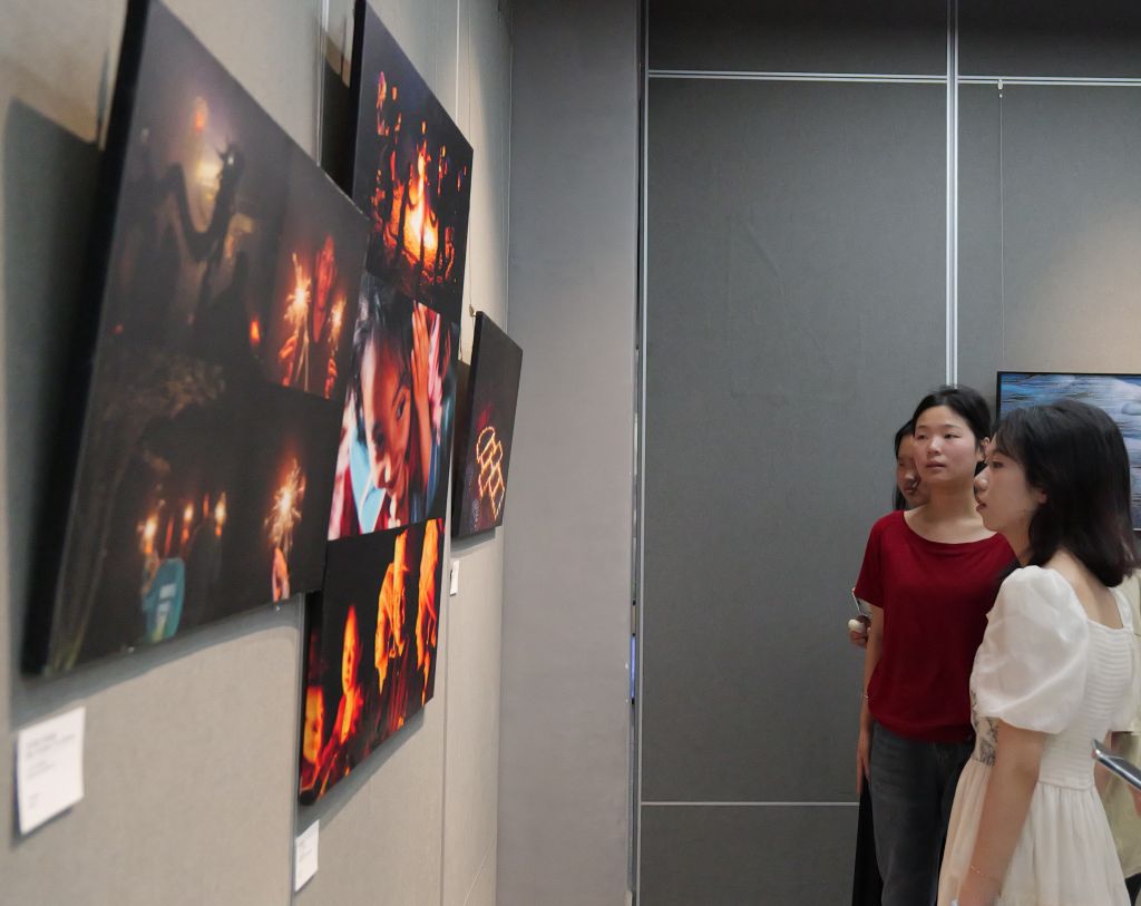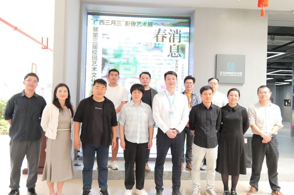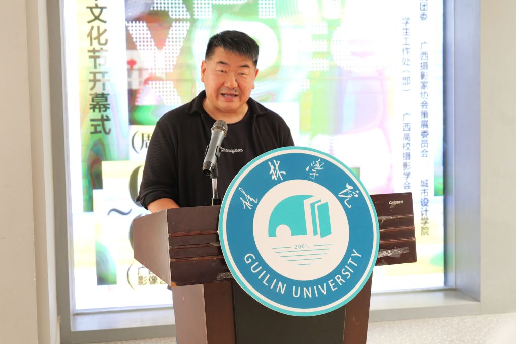 蒋毅宣布学校第三届校园艺术文化节开幕。随后师生一行步入艺术创意展示中心进行参观,本次展览征集了区内50多位摄影艺术家的作品,作品题材以广西各地自然风光、城市景观、民族风情为主题,作品类型涵盖摄影、视频、数字影像等,展览的举办不单是一次艺术走进校园、服务校园的活动,更是为师生们观察南方影像提供了一种样本和视角。