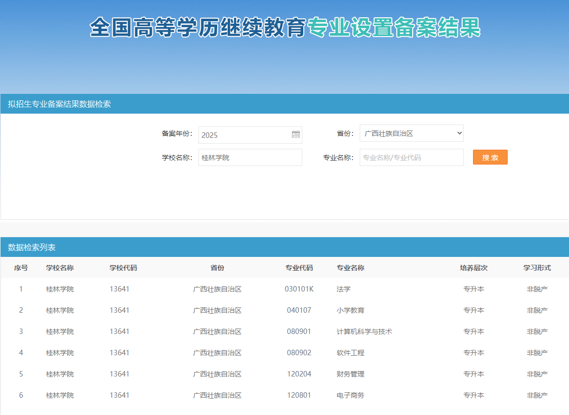 通过本次备案的6个高等学历继续教育专业