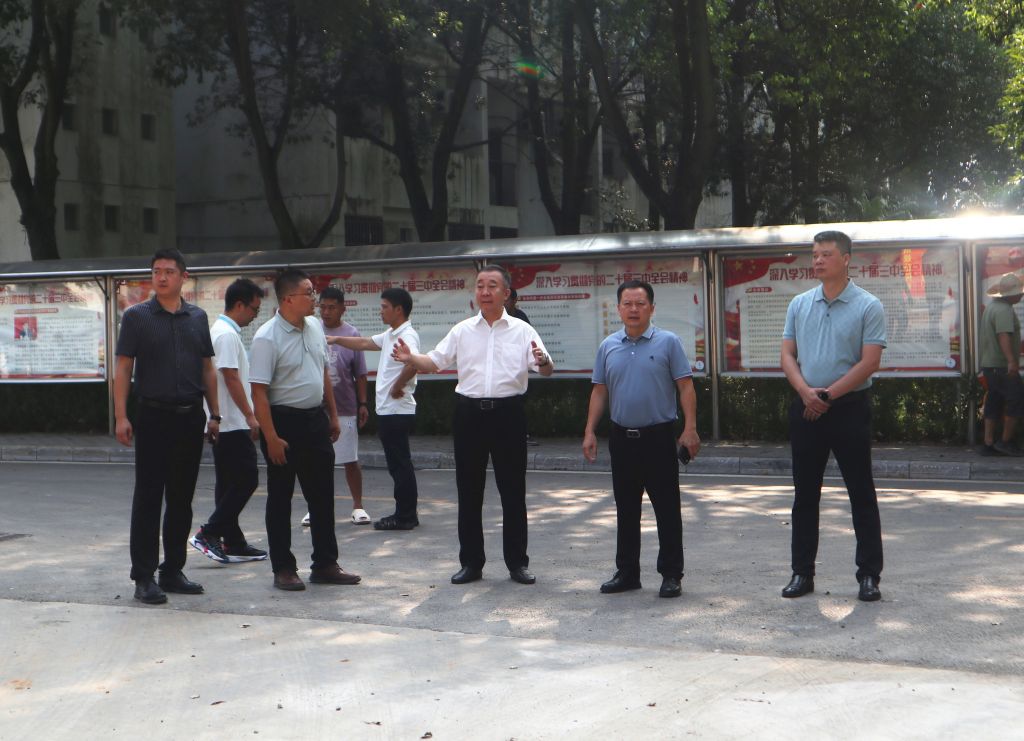 校领导一行来到学生宿舍慰问一线值守人员并调研校园一期改造工程进度。吴郭泉亲切慰问值守人员,感谢他们为保障学校安全稳定作出的积极贡献,嘱咐大家在坚守岗位的同时也要注意身体健康,谨防中暑。接着,校领导一行走访调研了一期校园环境优化改造施工进度,并对发现的问题提出整改意见。