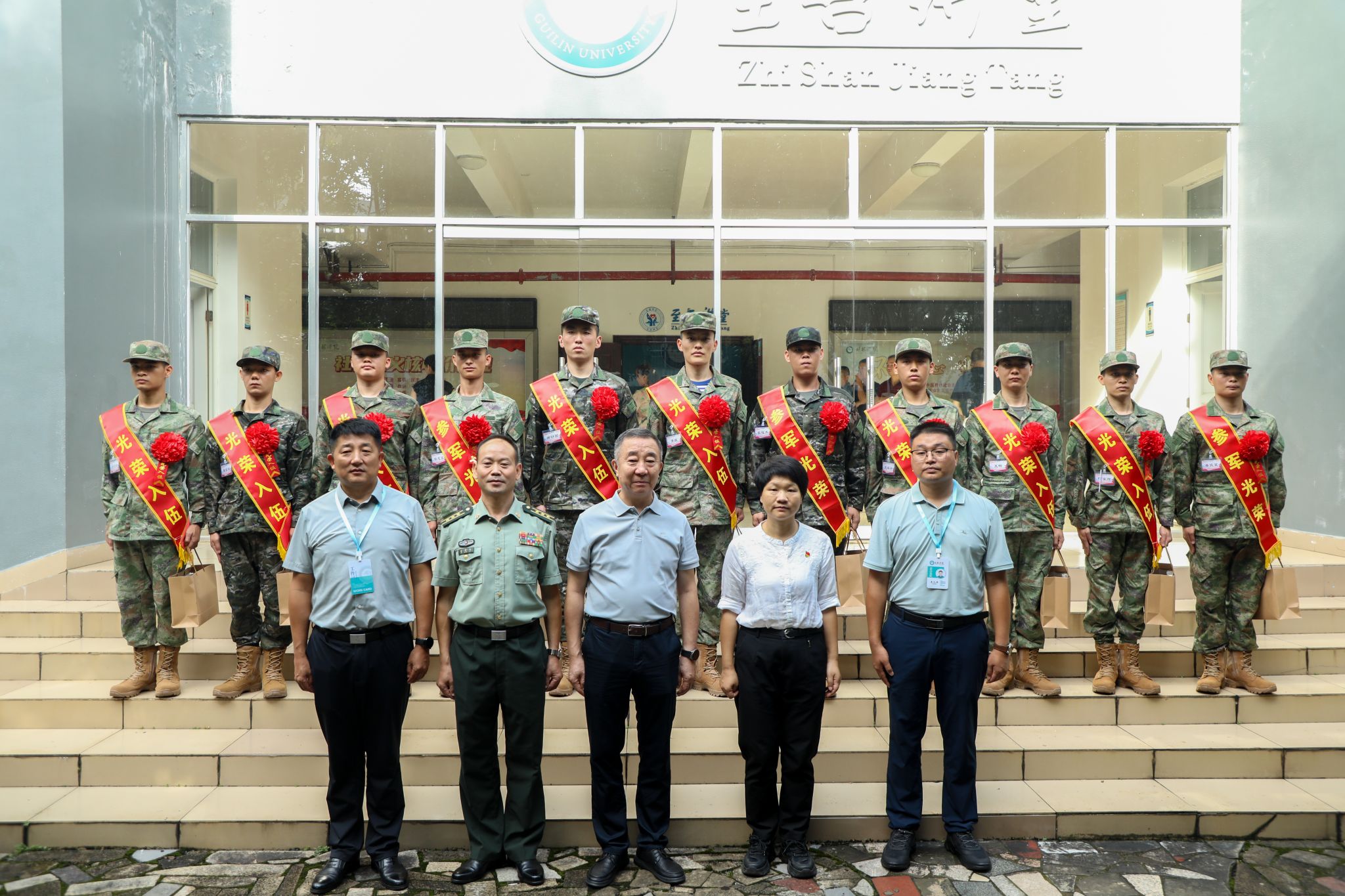 会后,吴郭泉为学校秋季应征入伍的11名新兵赠送了纪念品,并与他们亲切合影留念。
