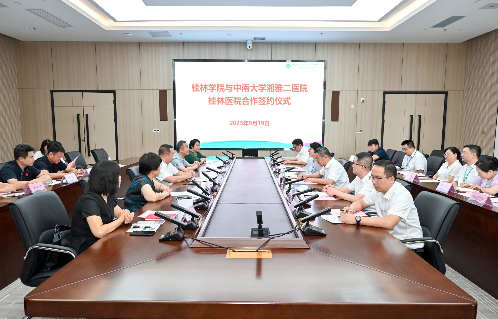 为推进落实桂林市委、市政府的决策部署,响应国家区域医疗中心建设战略,推动优质医疗资源扩容与均衡布局,9月19日上午,在市委、市政府的大力支持下,学校与中南大学湘雅二医院桂林医院(国家区域医疗中心)签署战略合作框架协议。学校董事长陶毅,校领导吴郭泉、康庚莲、杨庆庆,中南大学湘雅二医院桂林医院领导刘先领、李明、范伟娟、范峻峰及双方中层干部代表出席本次签约仪式。签约仪式在湘雅二医院桂林医院临桂院区举行。