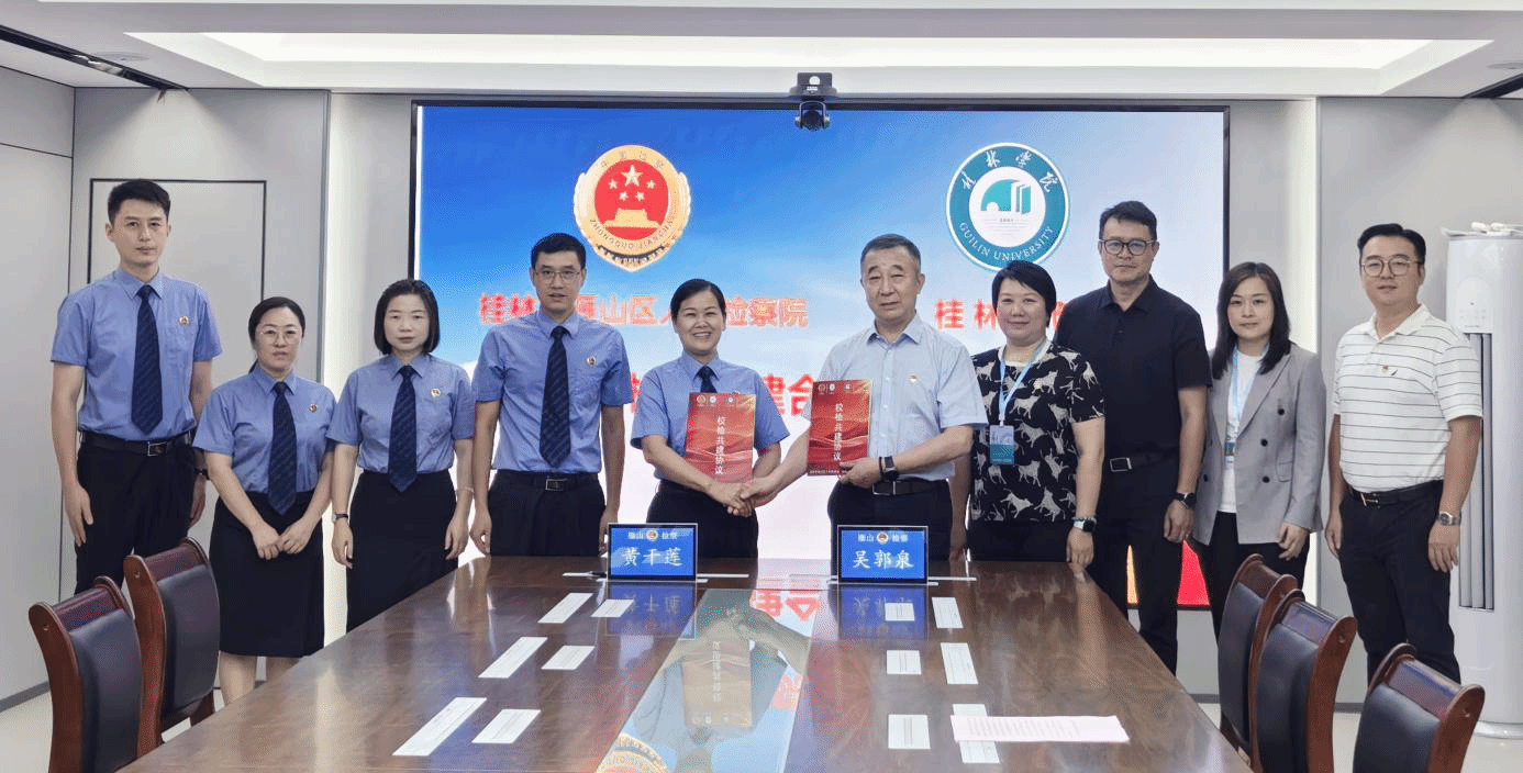 为深入贯彻落实习近平法治思想,落实最高人民检察院与教育部《关于加强新时代检察机关与高等学校合作的意见》及相关部署要求,推动法学教育、理论研究与检察实践深度融合,9月23日上午,学校与桂林市雁山区人民检察院举行校检合作座谈会并签署校检共建协议。校长吴郭泉、副校长杨庆庆,桂林市雁山区人民检察院检察长黄干莲、副检察长李桂华及双方中层干部代表、教师代表、检察官代表出席本次活动。签约仪式在桂林市雁山区人民检察院举行。
