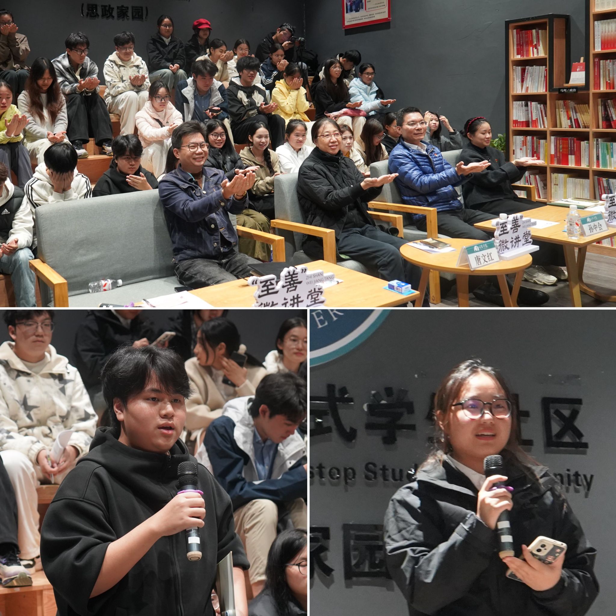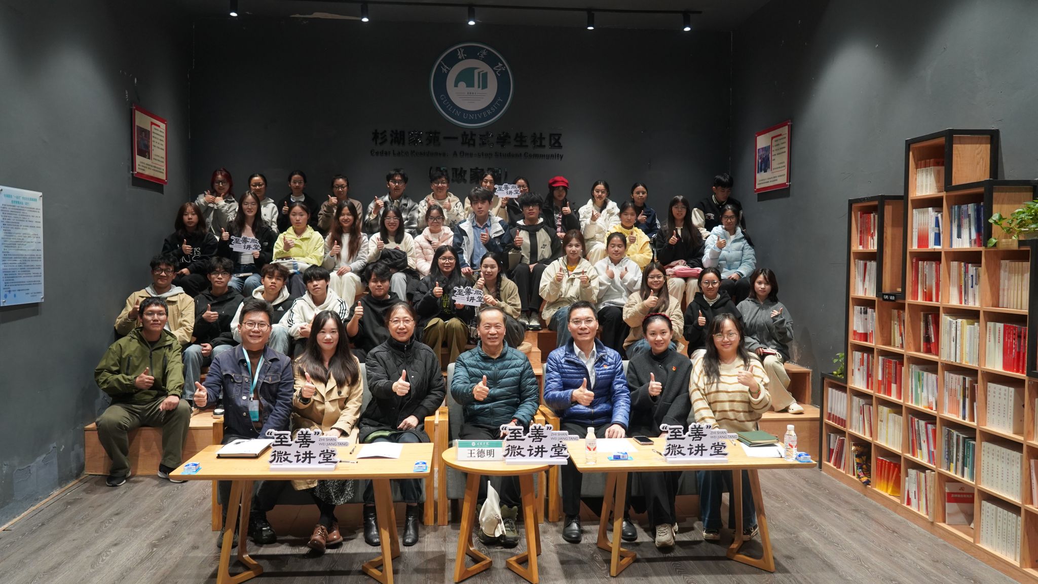 至善微讲堂,传递大能量。11月4日,学校首期至善微讲堂在杉湖家苑“一站式”学生社区思政家园开讲,本期微讲堂特邀我校文化与传媒学院王德明教授担任主讲人。校党委书记唐文红、校思想政治工作委员会副主任孙中会、校团委、马克思主义学院、文化与传媒学院相关人员及学生代表参加本次活动。