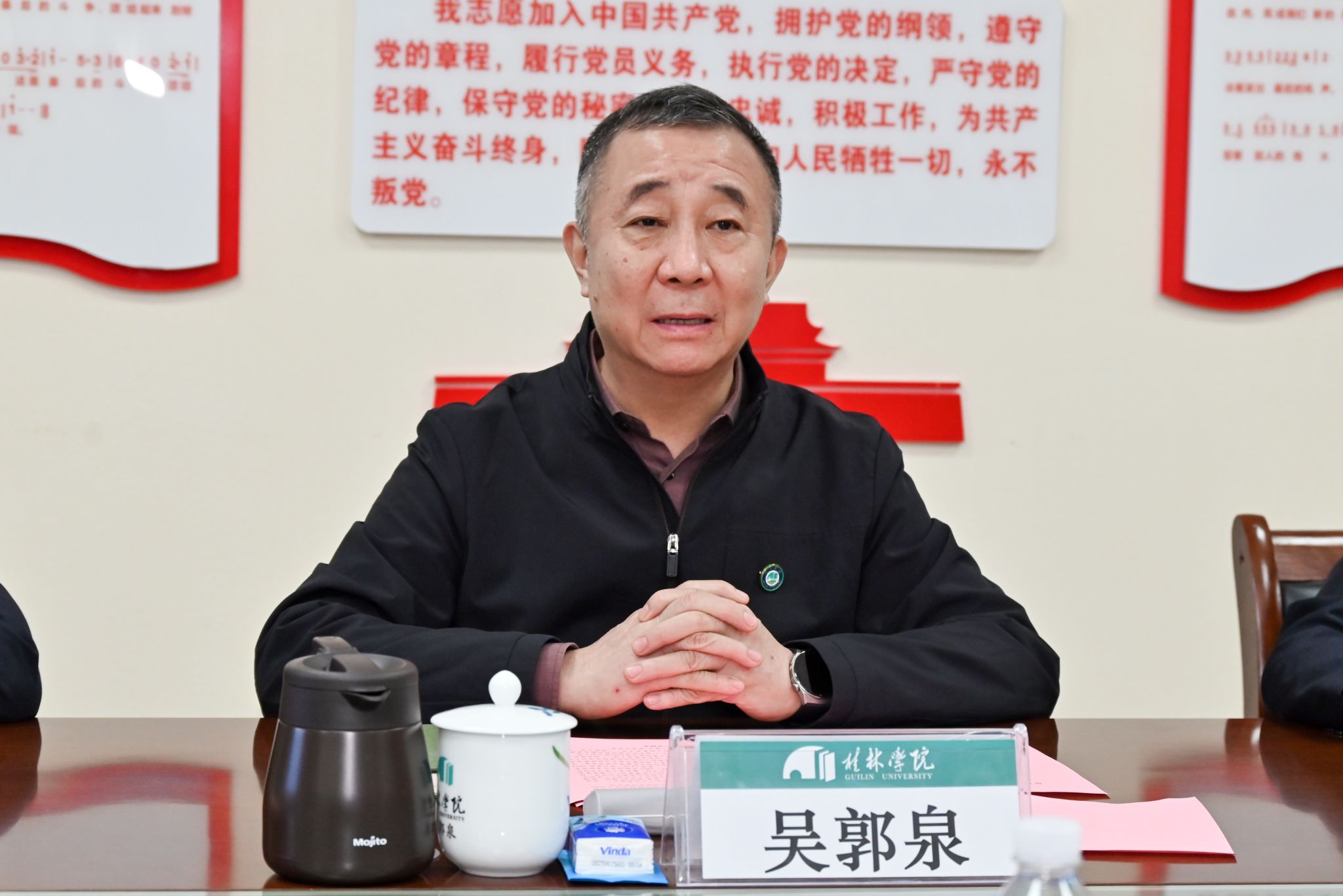 赵家维充分肯定了学校的办学成效与发展思路,并围绕校地国企协同、学校高质量发展提出要求与建议。赵家维指出,桂林城建集团与学校要“分工不分家”,心往一处想、劲往一处使,凝聚发展合力。学校要精准明确办学定位与特色,紧密契合桂林世界级旅游城市核心定位,实现办学与地方发展同频共振。赵家维强调,学校要高起点谋划学科专业设置,聚焦差异化发展,避免同质化竞争,打造核心办学优势;要强化市场化运作思维,加强成本核算与绩效管理,提升办学与项目建设的质效;要充分认识人才培养质量与管理制度建设的重要性,以优质人才输出与规范管理支撑长远发展;要加强协同配合,提前谋划、扎实做好相关评估准备工作;要做好校园安全管理,施工单位需严格遵守学校教学秩序,筑牢安全发展防线。赵家维表示,市国资委将全力推动市属国企与学校深化合作,在产教融合、项目共建、人才输送等方面给予全方位支持。