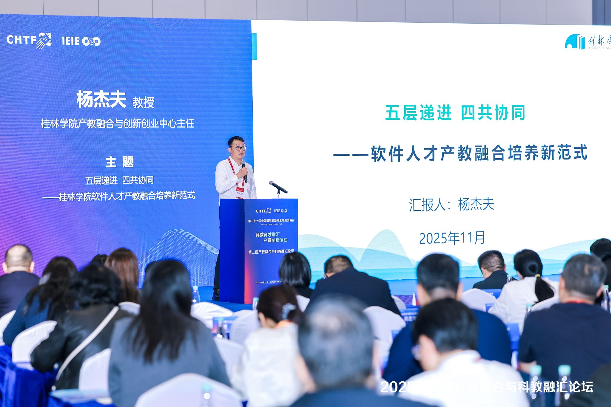 11月14日,第二十七届中国国际高新技术成果交易会(简称“高交会”)在深圳开幕。在大会同期举办的第二届产教融合与科教融汇论坛上,学校报送的《五层递进 四共协同——软件人才产教融合培养新范式》案例成功入选“产教融合典型案例汇编”,并作为典型代表作主题发言,向全国教育界与产业界分享学校在应用型软件人才培养方面的创新探索与实践成果。